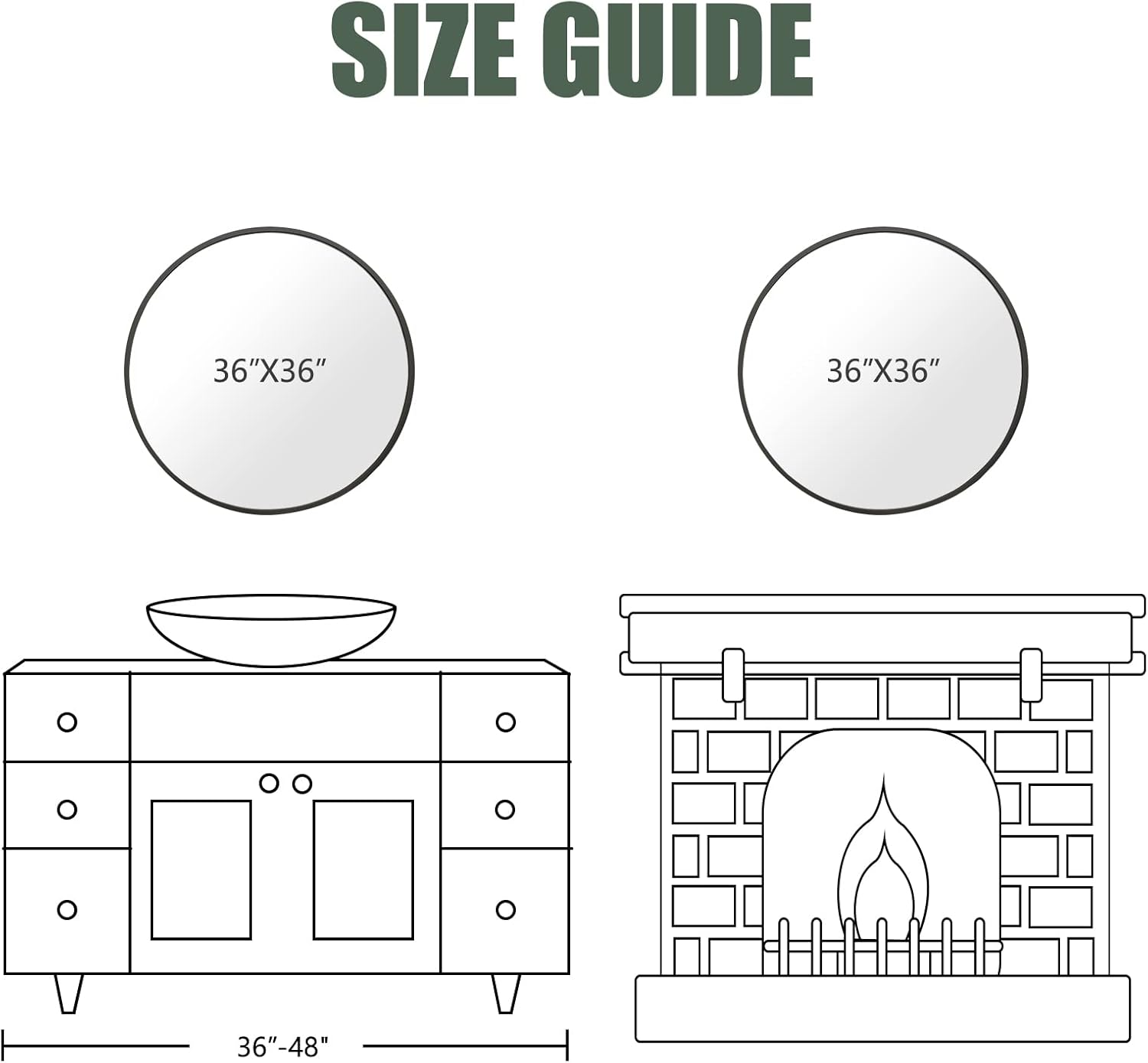 - Modern Brushed Frame Design: 36-inch black circle mirror is crafted of an aluminum alloy metal sleek frame, making it ideal for bathroom mirror, entrance mirror, vanity mirror, living room mirror