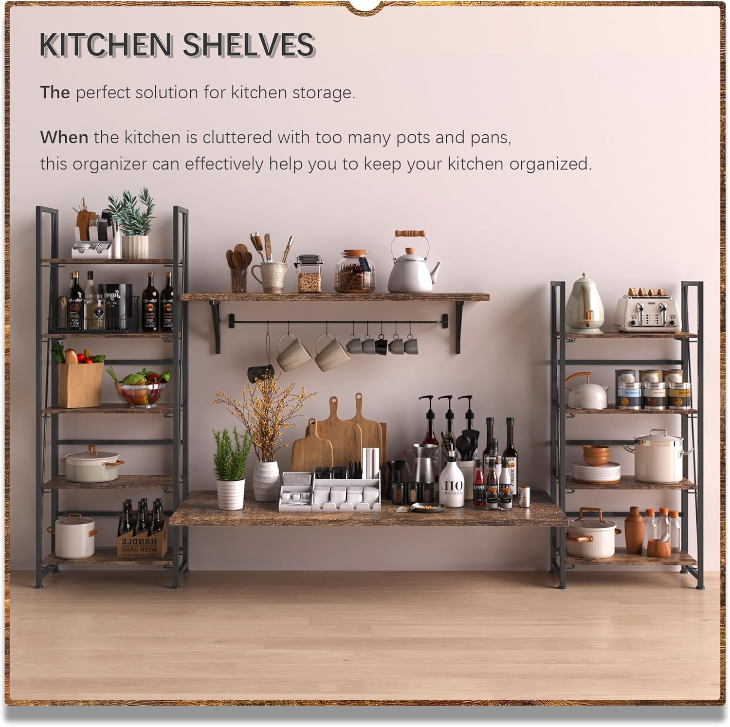 4NM No Assembly Foldable Bookshelf, 5-Shelf Collapsible Bookcase Storage for Small Spaces, 62.2" H, Rustic Brown and Black