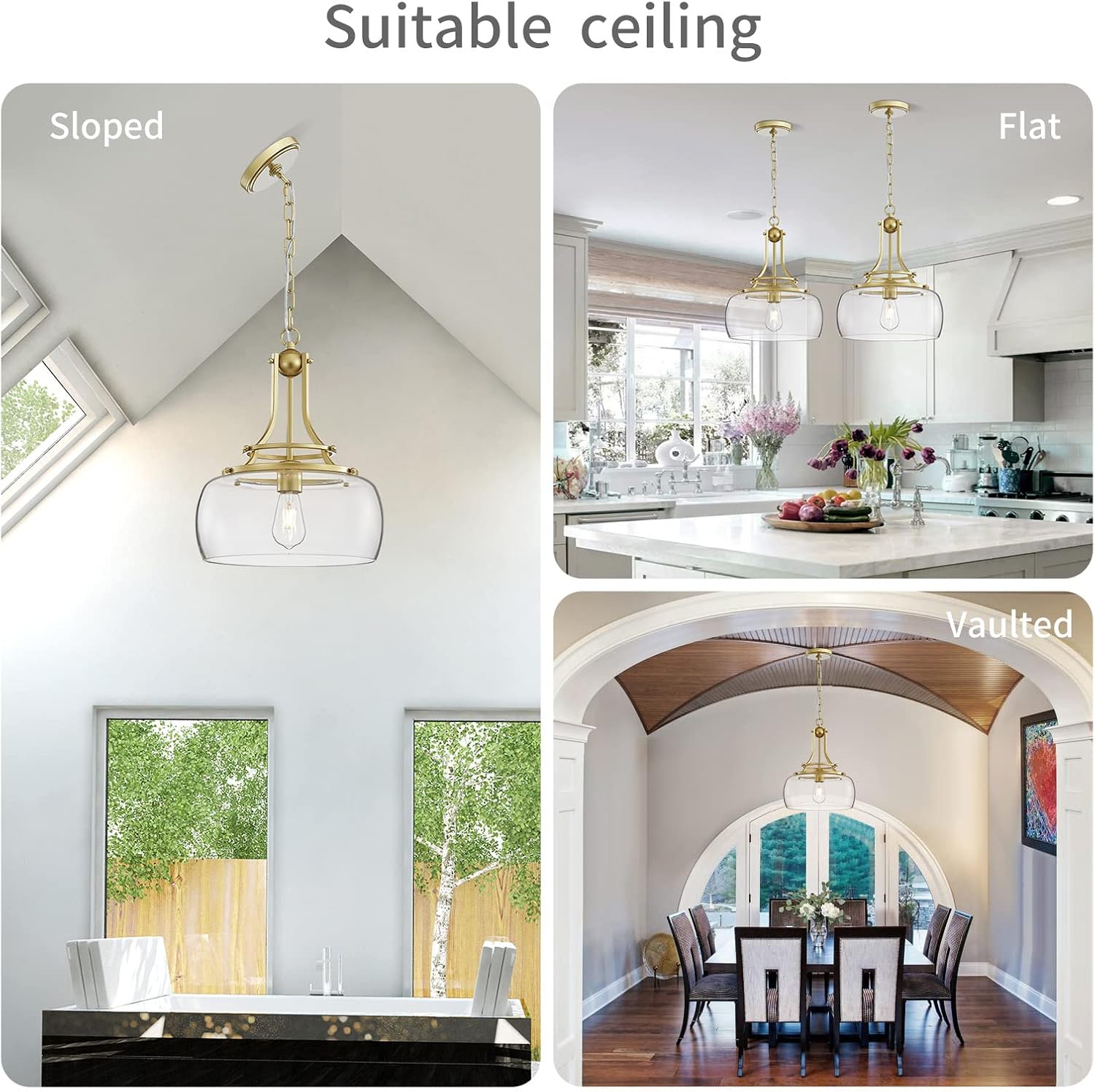- Design: This rustic farmhouse Wuzups pendant chandelier light with design offers a modern interpretation of a classic urban-industrial style, which adds a vintage flair to your space. It comes in a gold finish and features a prominent round clear glass shade. The mouth-blown glass has a few pinprick bubbles that add to the vintage look and feel. As an added bonus, this pendant light comes with an energy-efficient LED light bulb in a classic Edison style that's sure to add a nostalgic glow.