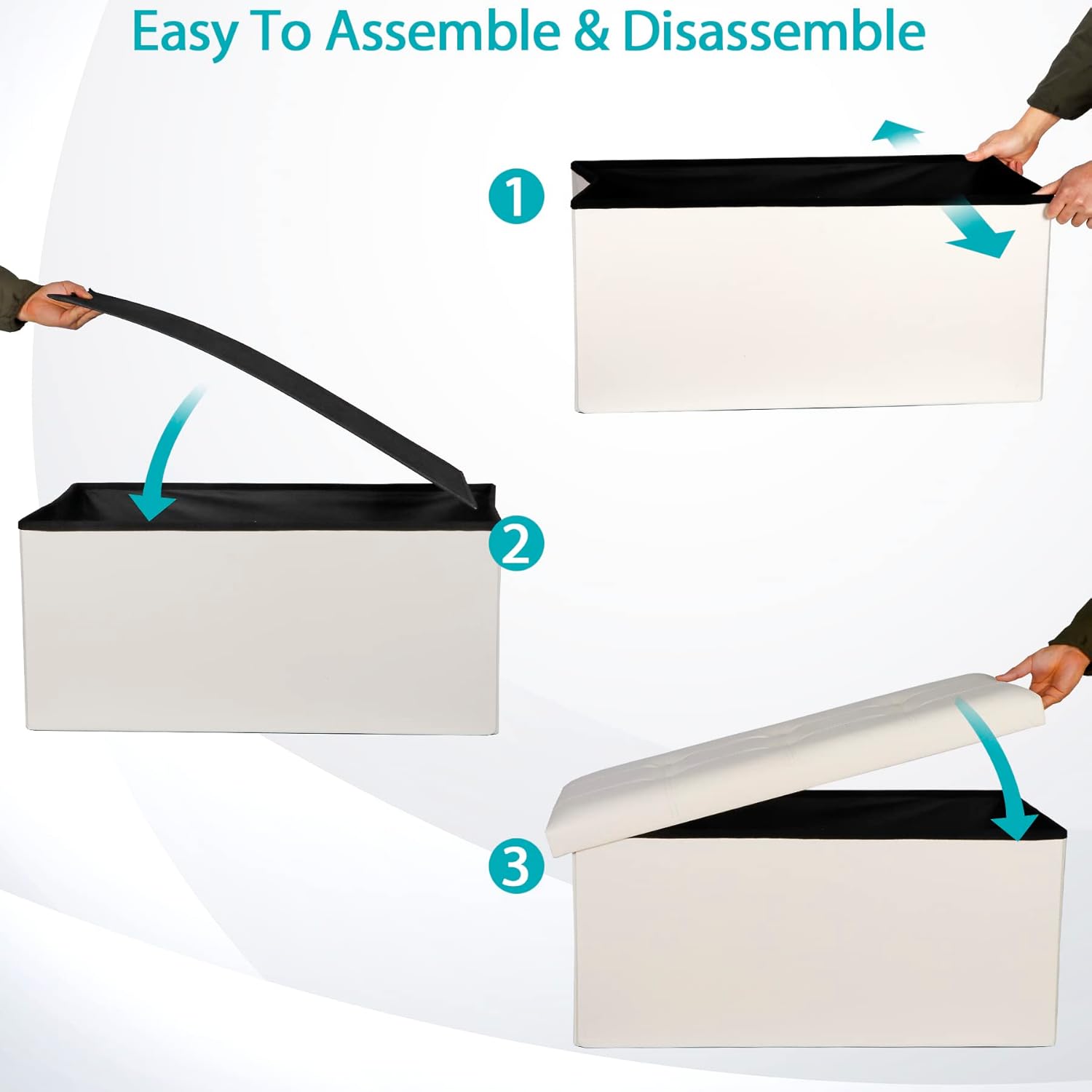 - 【Sturdy & Durable】This comfortable long storage ottoman is made of quality thick cardboard, durable faux leather, has the load bearing capacity up to 350lbs. Waterproof linen fabric, built-in thickened sponge, make the cushion is soft and comfortable. Creamy white unit you see everywhere and a perfect match to your couch or dining room chairs