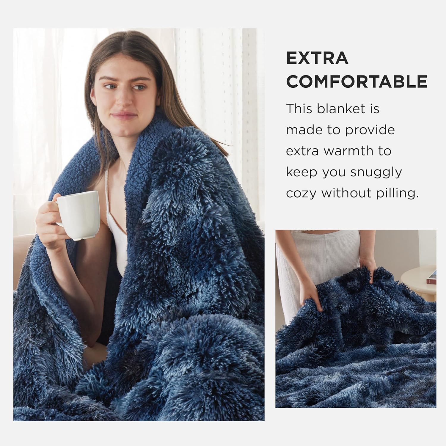 Bedsure GentleSoft Fluffy Tie Dye Navy Blue Blankets Queen Size for Bed, Thick Sherpa Faux Fur Fleece Fuzzy Plush Winter Warm Soft Queen Blankets, Bedroom Decor Blue Cozy Gifts for Women Men, 90x90