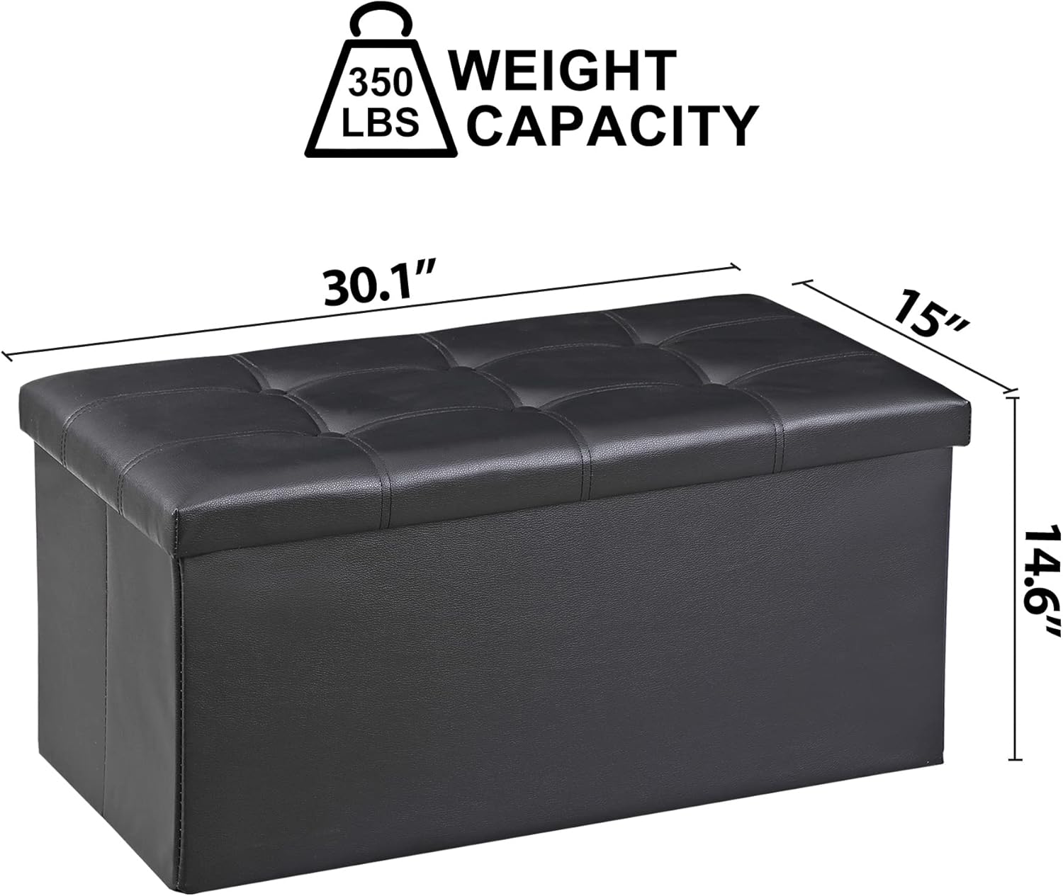 SUPER DEAL 30 inches Folding Ottoman with Storage, Bedroom Footrest Bench, Rectangle Sotrage Chest for Living Room Entryway, 30"x15"x15", 85L, Faux Leather, Black