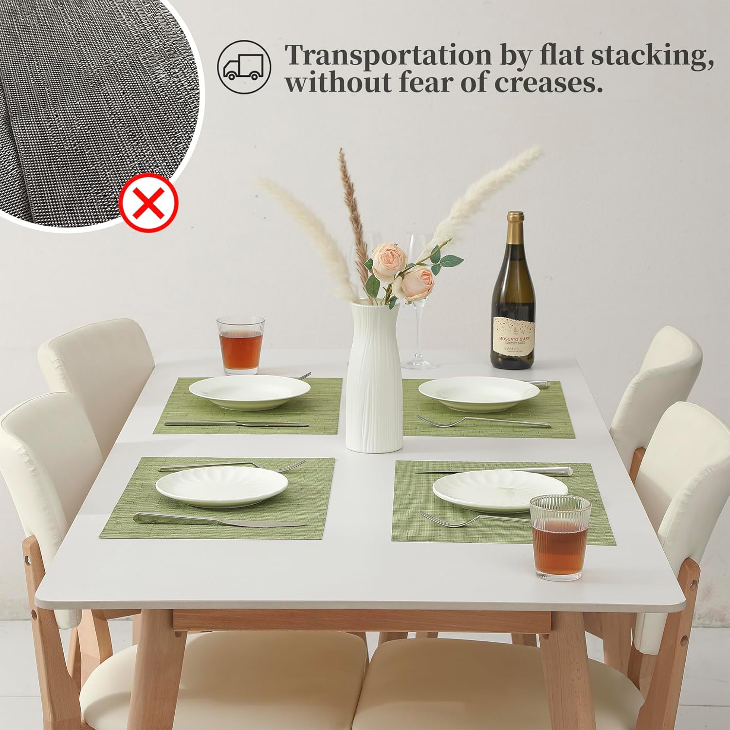 Leetaltree Pea Green Placemats Set of 4 - Heat Resistant Non-Slip Place mats for Dining Table, Washable Durable PVC Vinyl Woven Table Mats(Pea Green, 4)
