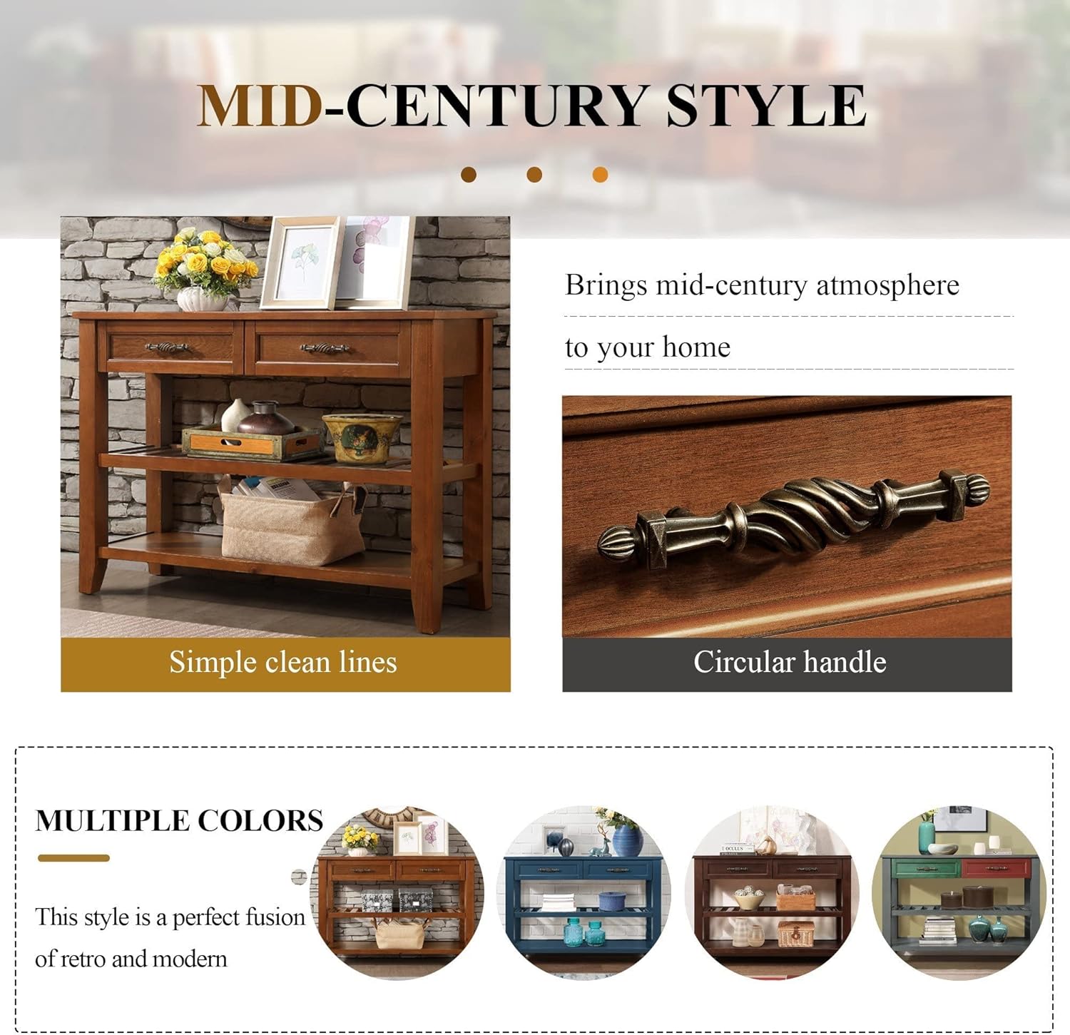 - ćMultifunctional Consoleć This console can be used not only as a porch table and sideboard, but also as a sofa table, porch table and buffet table. You can put it in the kitchen, bedroom, hallway, living room, office, etc. A space-saving desk can help you organize your supplies and keep your room clean and organized.