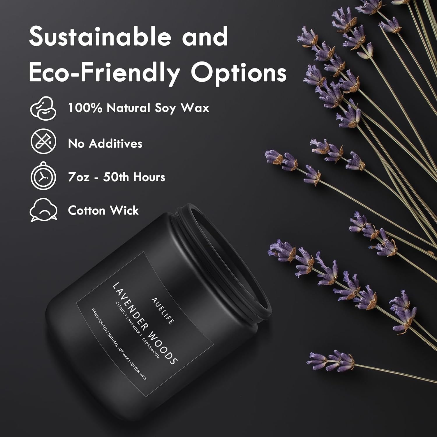 Scented Candles for Men | Lavender & Wood Candle - Candle for Men, Manly Candles for Home Scented, Man Gifts for Him/Friend, 7oz Black Jar