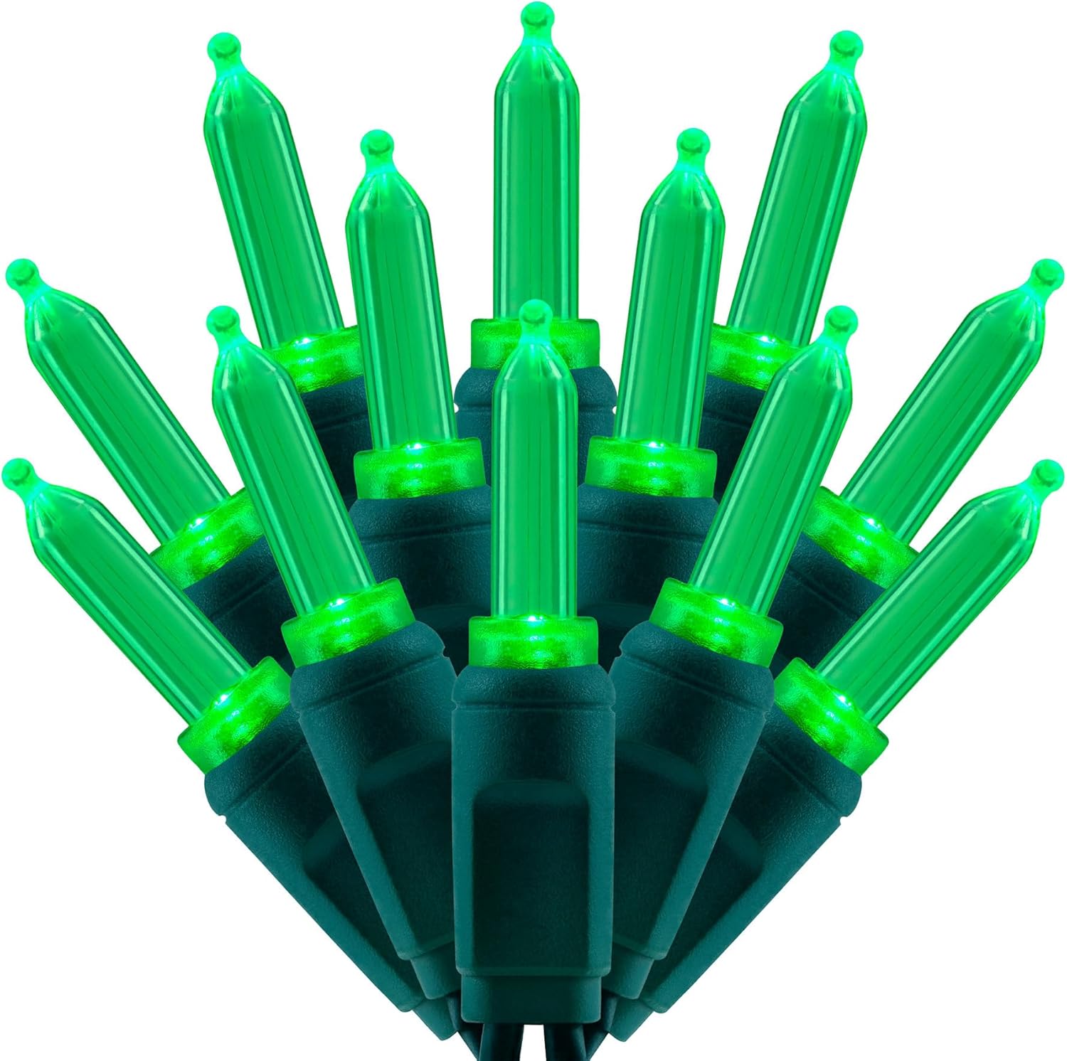 - SPECIFICATIONS β Each pack contains 1 strands of one-piece string lights, total length 33 feet with 100 count green mini lights. 22 AWG green cord, 4" lead, 4" spacing, 4" tail.