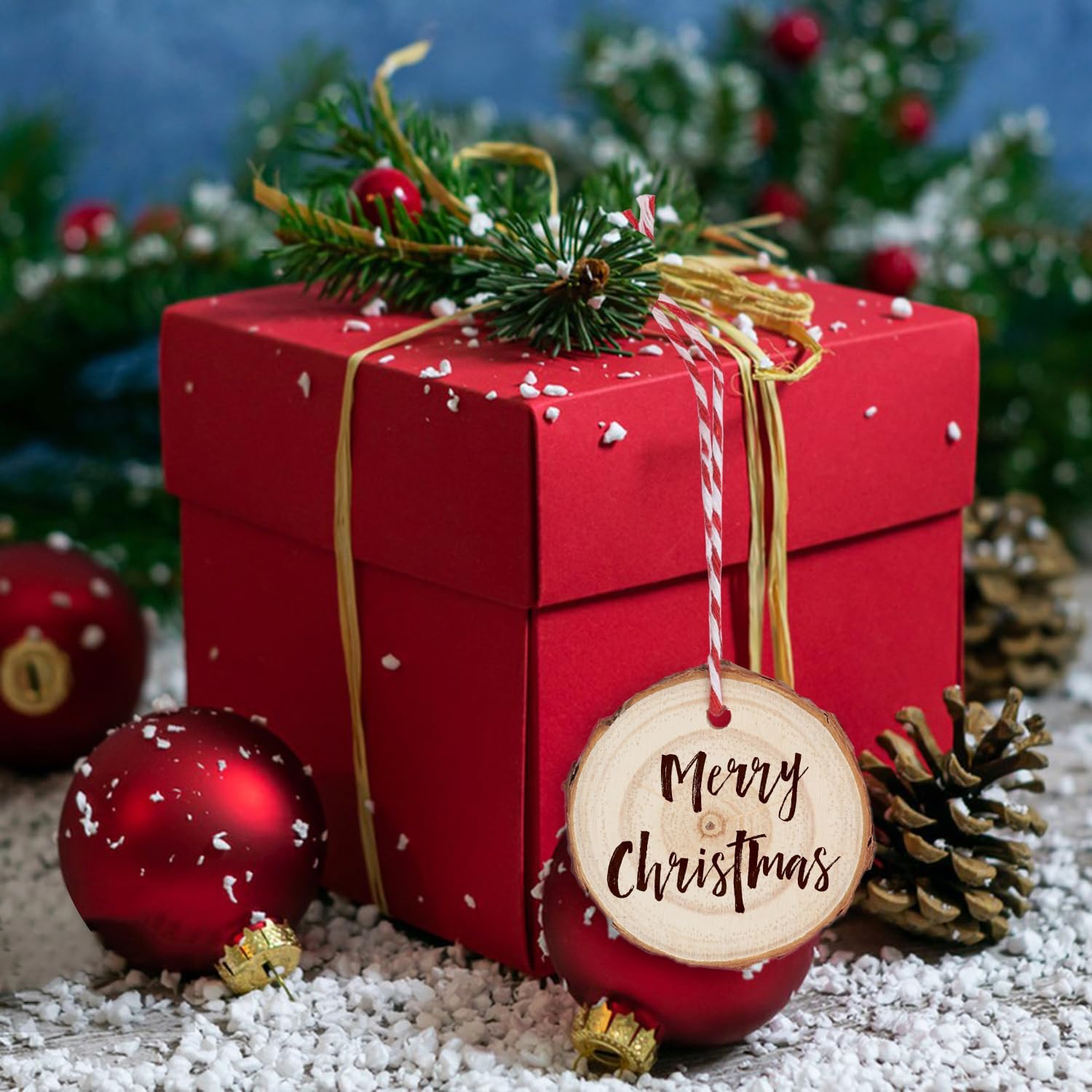 - 【 Easy to Use】 Each wood slice comes pre-drilled with a small hole and includes a roll of jute rope and a roll of red-and-white intersecting rope, making it convenient for you to hang your finished ornaments.