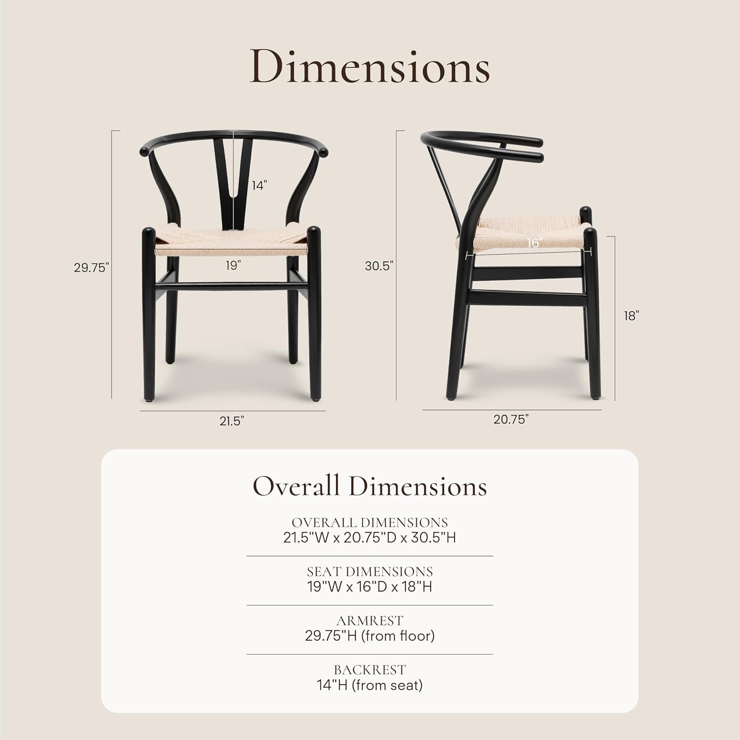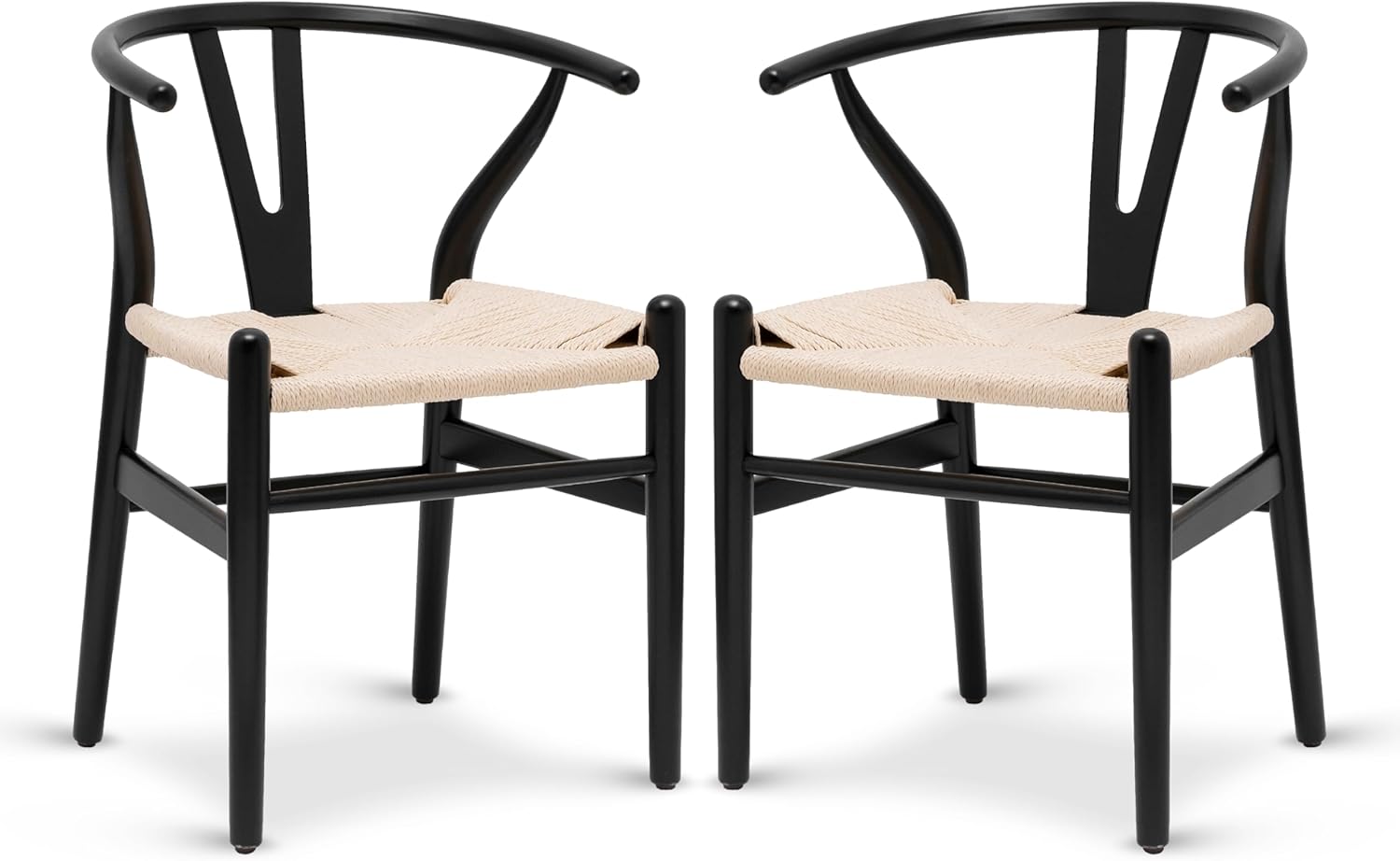 - Mid-century form. Everyday comfort: Inspired by the iconic wishbone dining chair silhouette, these woven dining chairs combine clean lines, curved support, and lightweight open frames. Built-in arms and gently arched backrests provide added comfort. Their airy, sculptural design brings visual warmth and inviting texture—making them versatile pieces for everyday use.