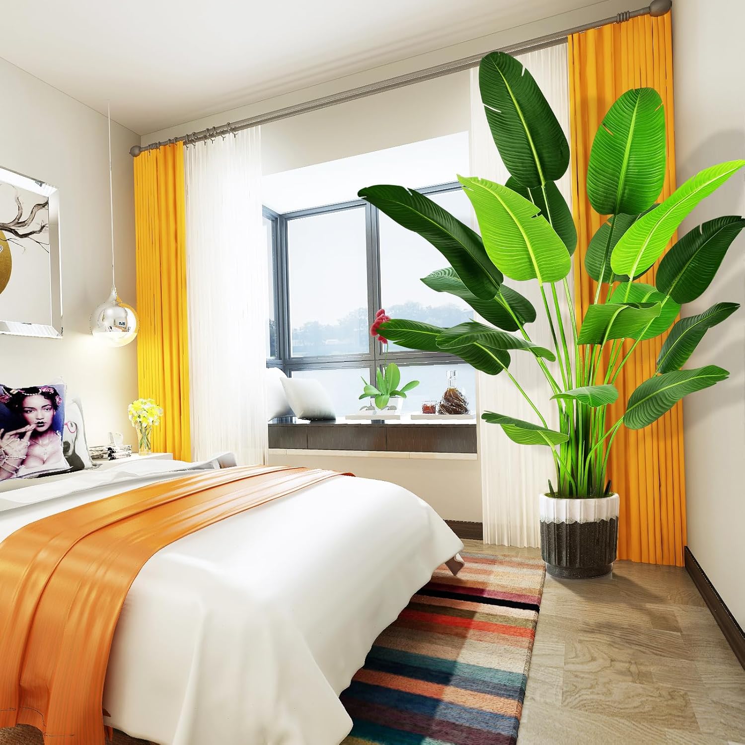 - 【BEST DECORATIONS】 Carefully crafted to mimic the appearance of a real-life Artificial Silk Bird of Paradise Palm Tree, looking as close to reality as possible, perfect for any room or office and outdoor decor, this fake bird of paradise tree will let you feel the presence of nature . All seasons are green. Perfect housewarming gift.