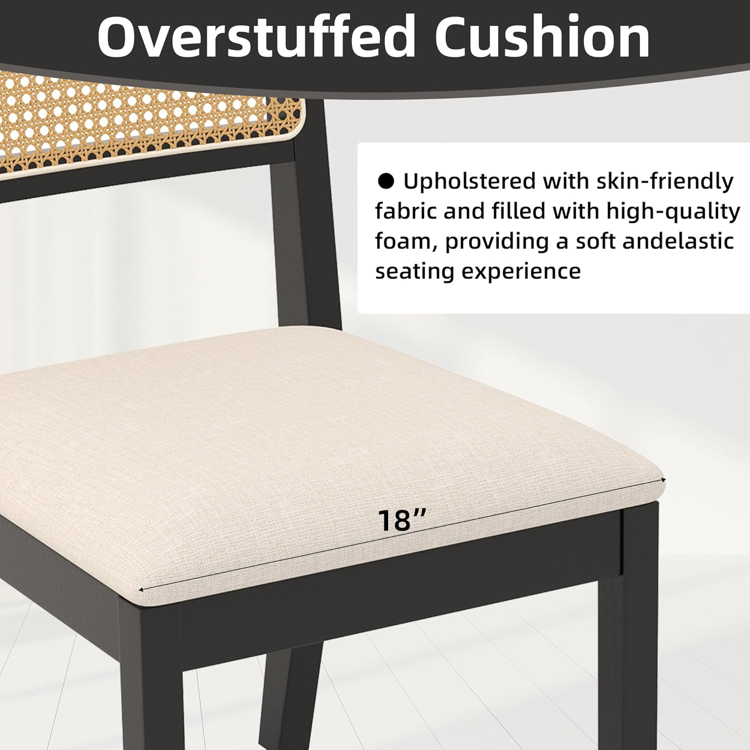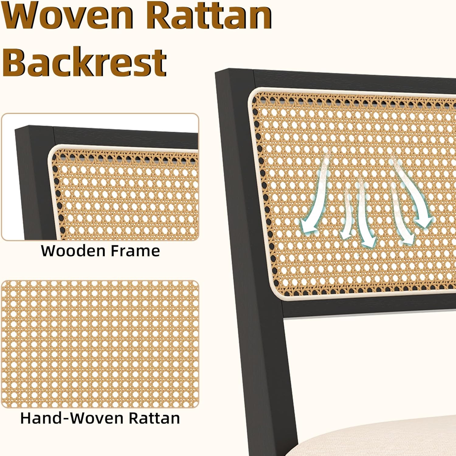 - 【Breathable Rattan Back】Hand-woven with a natural open-weave design, our chairs feature a rattan back that promotes excellent airflow. This makes them exceptionally comfortable, particularly in warmer climates. The inherent flexibility of rattan adds a gentle give, further enhancing the seating comfort.