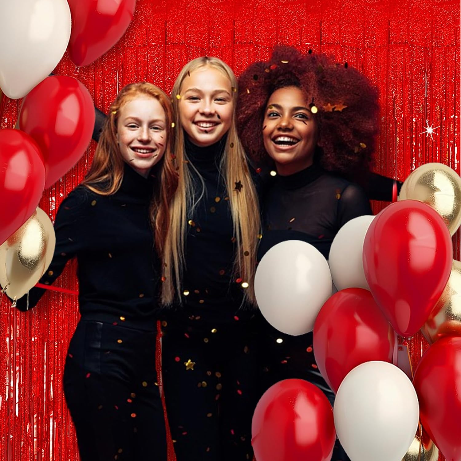 - Red Streamers Backdrop Curtain:The back of fringe curtain has double-sided tape, which can be stuck very firmly to any place you want such as walls, tables, door frames. You can use scissors to cut the length you want, and you can use two or more pieces of the curtain to splice and overlap.