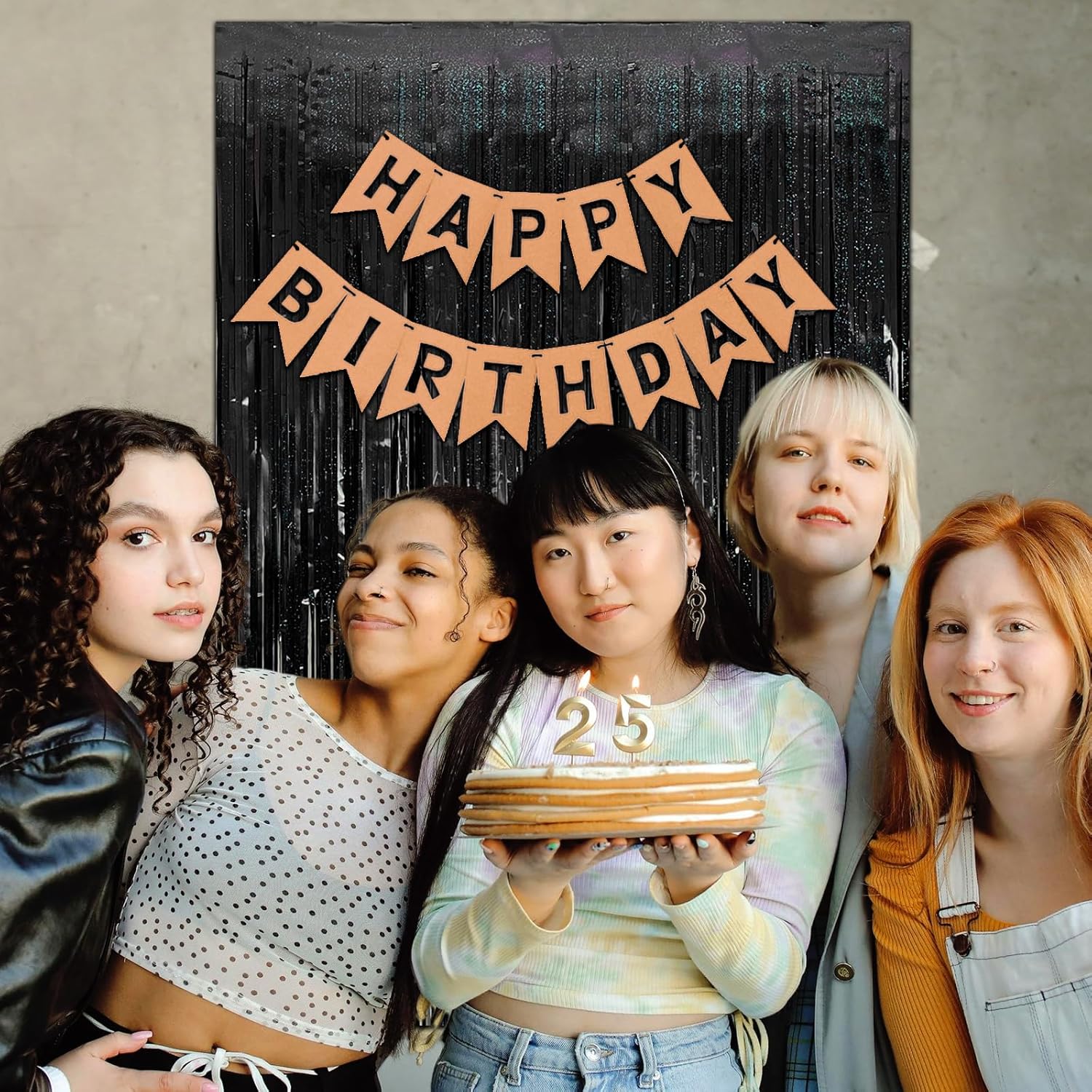 - Black Birthday Decorations:The back of fringe curtain has double-sided tape, which can be stuck very firmly to any place you want such as walls, tables, door frames. You can use scissors to cut the length you want, and you can use two or more pieces of the curtain to splice and overlap.
