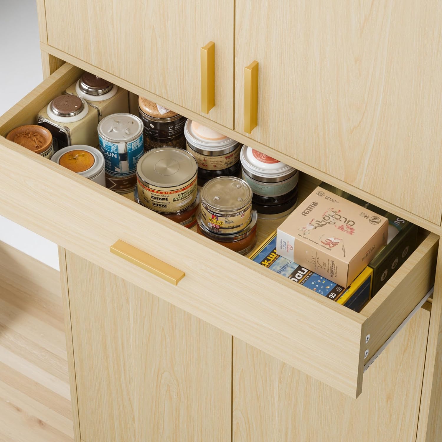 - Stable and Sturdy: Constructed with premium engineered wood and metal, this pantry storage cabinet features a structurally stable; The reinforced shelves in the middle and bottom can hold up to 132 pounds each, while the removable shelves and mid drawer can hold up to 50 pounds; Included anti-tipping kit ensures safe and long-term use