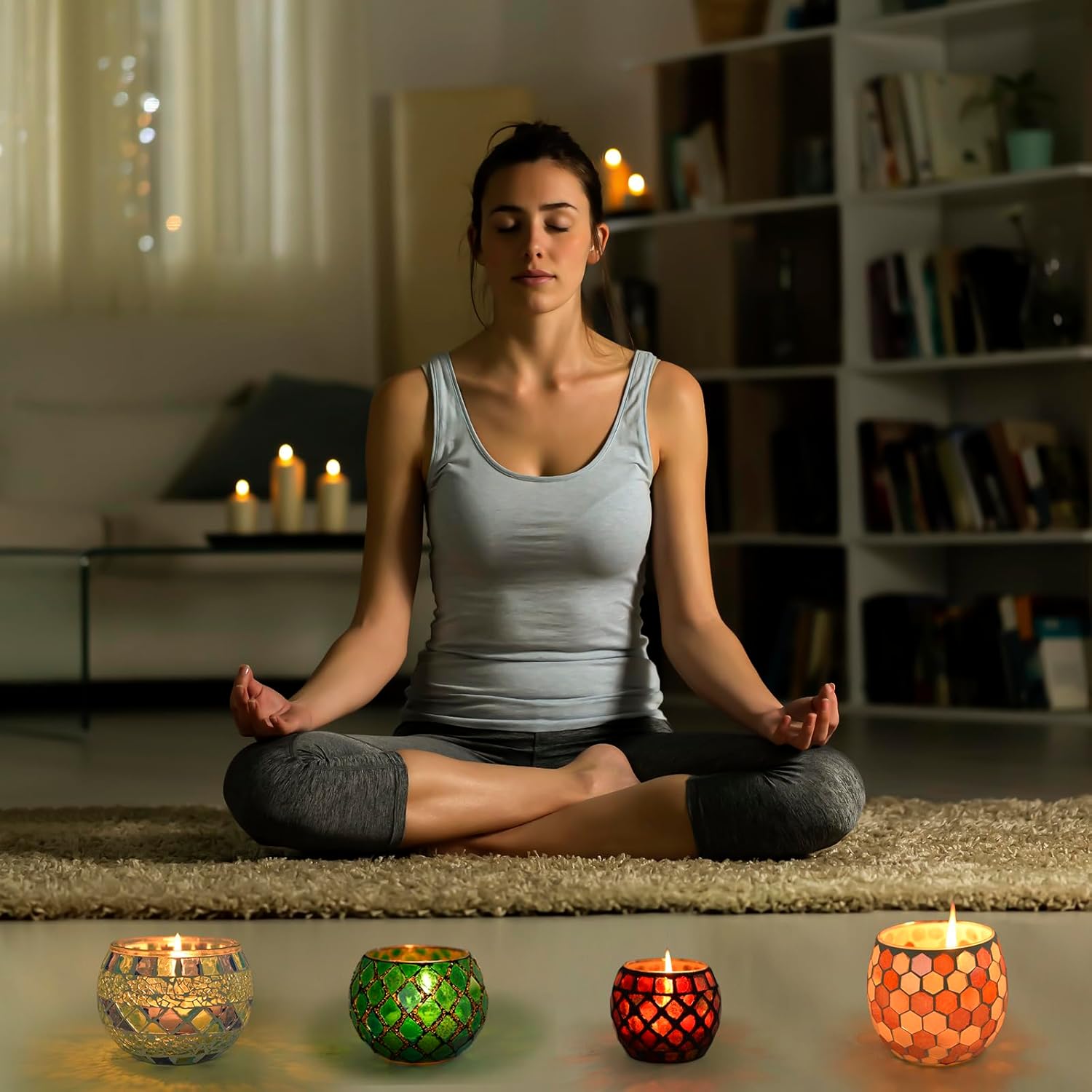 - HANDMADE OF HIGH QUALITY MOSAIC GLASS - This stunning tealight candle holder is crafted from hundreds of colorful glass fragments carefully placed on a thick glass bowl. Each votive candle holder is handmade, providing long durability and strong water & dust resistance