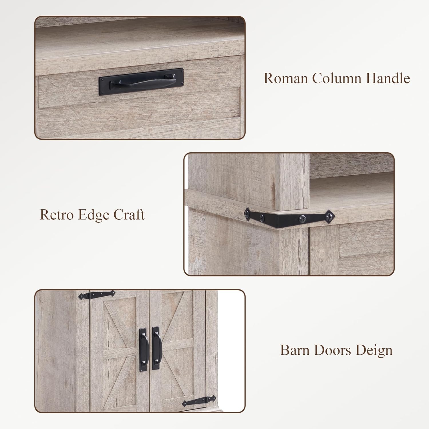 - 4-Tier Open Shelf Design : Each of the 3 shelves is free to move, allowing you to adjust the height to suit different item. adjustable shelf inside the hutch as well which can offer customized storage space.