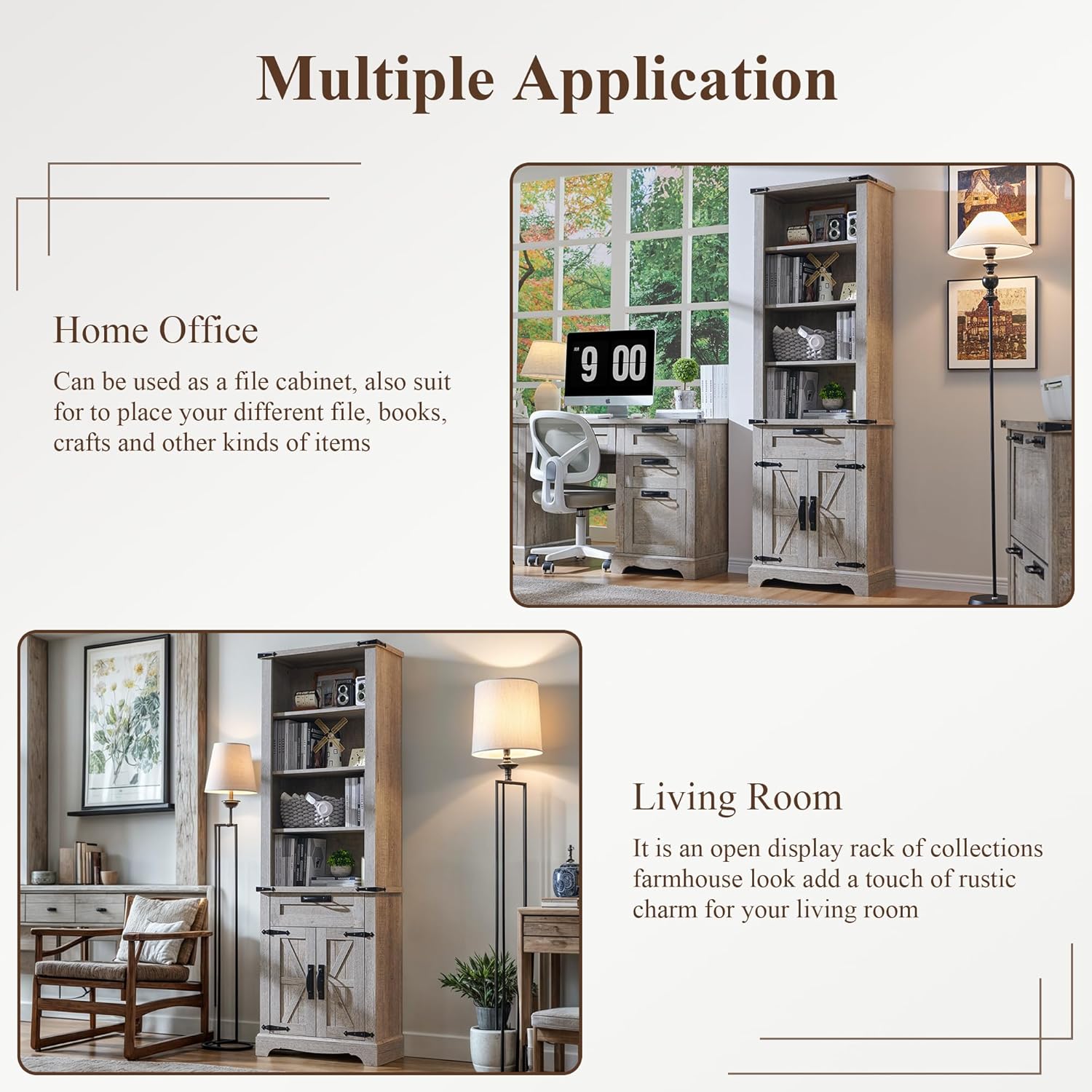 - Multi-Use: Office bookshelf designed like built-in cabinetry with handsome details that make it suitable for various room sizes. Together with functionality, it serves well as a bookshelf, pantry cabinet or display shelf in study room, kitchen and living room.
