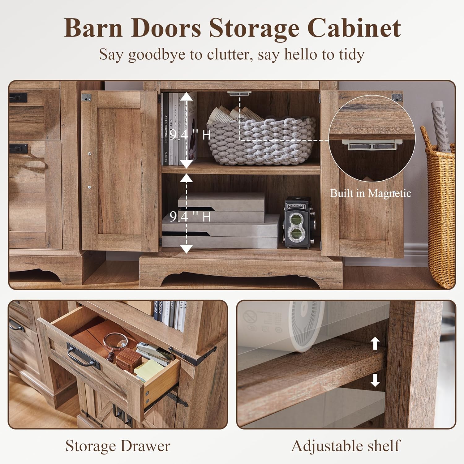 - Special Feature : Adjustable, Barn Door, Storage Drawer