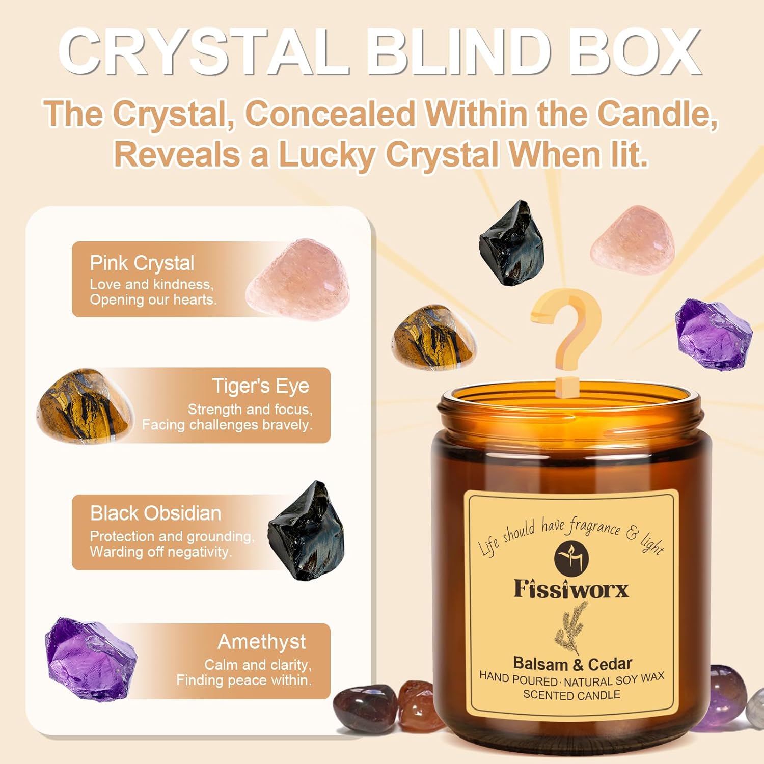 - Natural Soy Wax With Lucky Stone - Enjoy up to 60 hours of continuous burn time , proudly made with 100% natural soy wax that burns evenly. Our fragrances are paraben-free, phthalate-free, and never tested on animals. Fissiworx scents gently enhance spaces rather than overpower them, ideal for those sensitive to scents.(Our soy wax candles contain a random lucky stone that can bring good fortune to everyone. Additionally, it will not burn nor pose any danger).