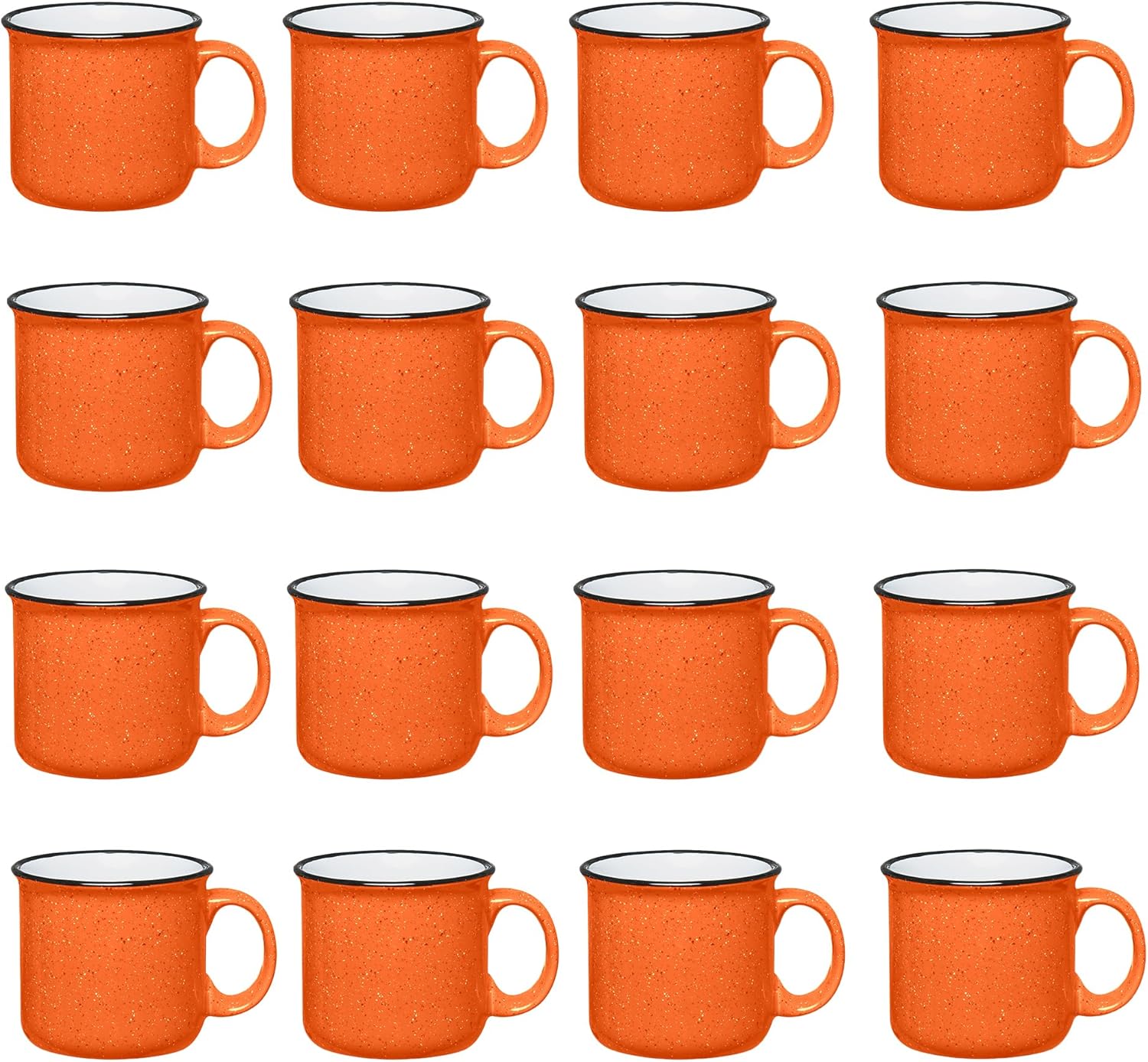 Set of 16 Ceramic Campfire Mugs – 15 Oz, Orange – Coffee & Tea Cups for Home, Work, Travel, Camping – Customizable, Great for DIY, Events, Companies