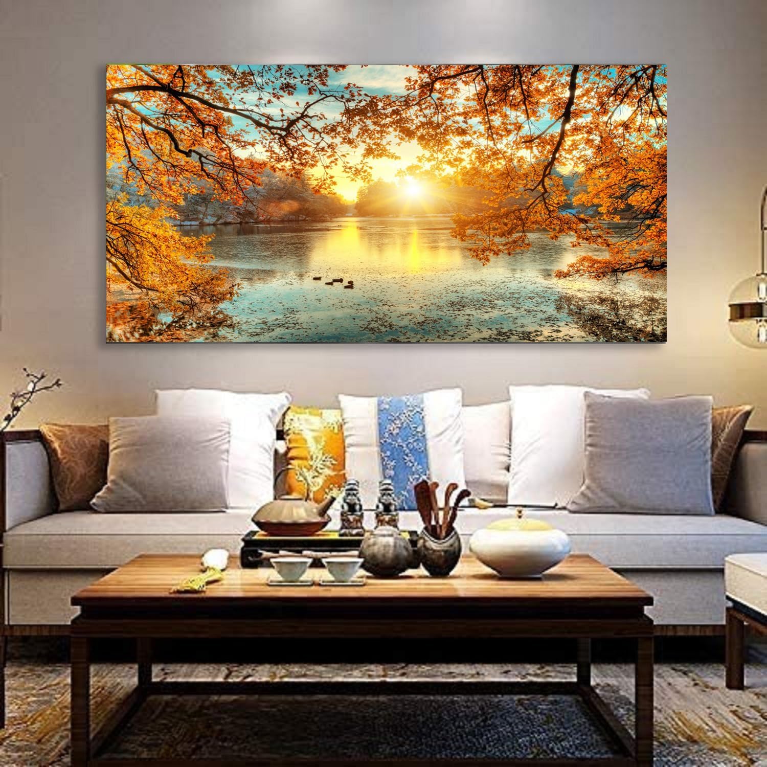 Yxbhhym-Landscape Tree Canvas Wall Art Fall Forest Sunset Wall Decor Poster Lake Water Pictures for bedroom wall décor Natural Scenery Paintings Artwork Large Living Room Decor Home Office Decoration