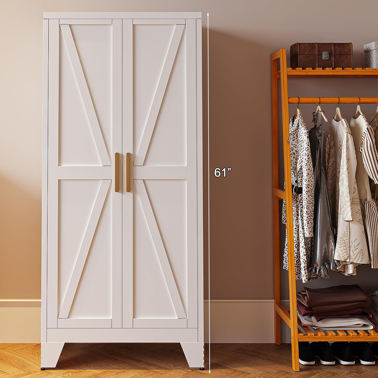 - Versatility: The 61-inch barn-style steel office cabinet is a classic and practical storage option for any room, from home offices to bathrooms, providing ample space for documents, kitchenware, towels, and more, while adding rustic charm.