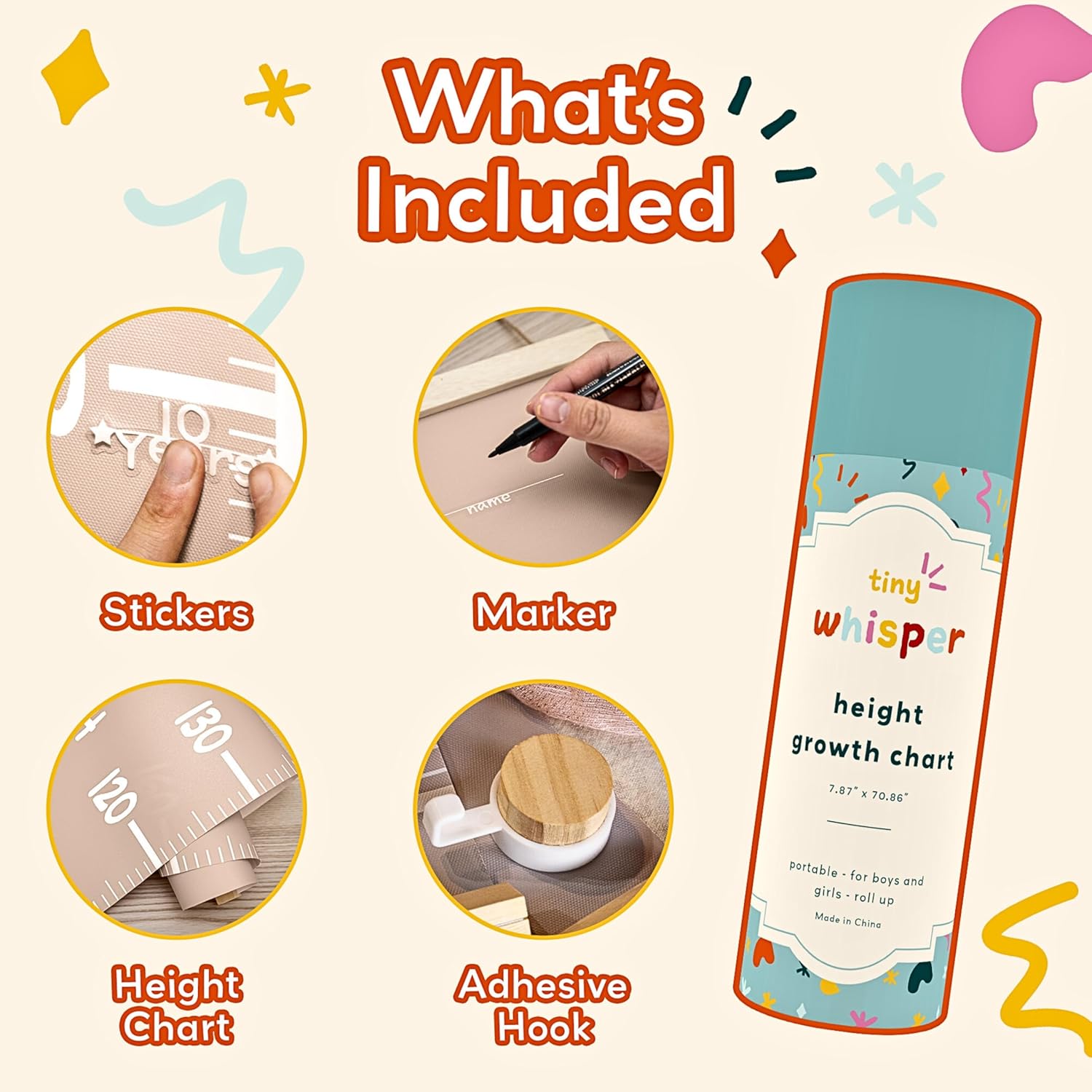 - Customizable Growth Chart for Wall: Make your child’s room unique with a personalized kids height chart. This growth chart for kids includes fun stickers, perfect for toddler room decor and a must-have for any baby room.