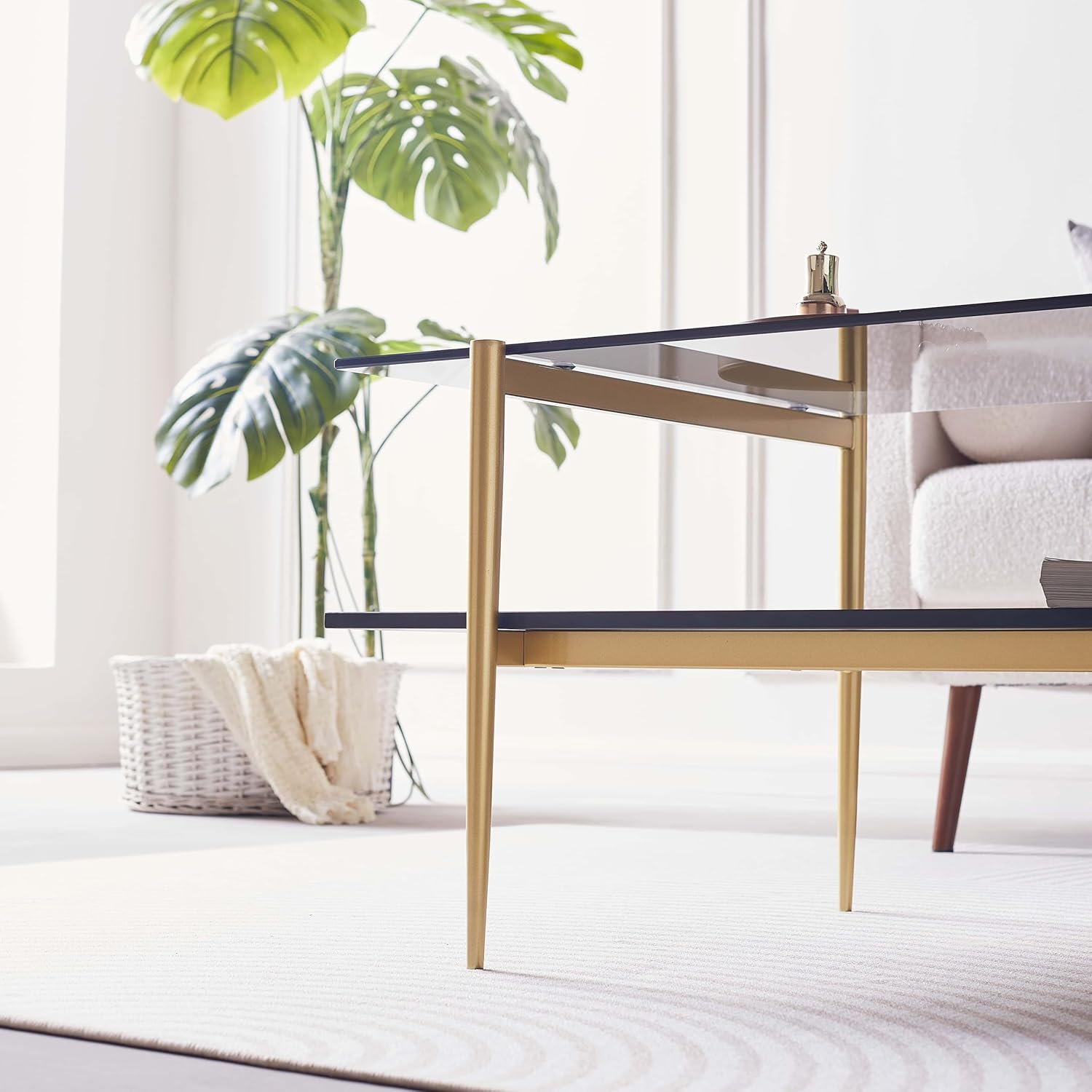 - 【Sturdy Material & Structure】Experience elegance meets durability with our furniture. Tempered glass top ensures clarity, strength, and ease of cleaning. MDF base offers stability, uniform density, and eco-friendliness. The sleek matte alloy legs offer sturdy support, ensuring stability even when fully loaded. Together, they create a stunning, long-lasting coffee table that's perfect for everyday use.