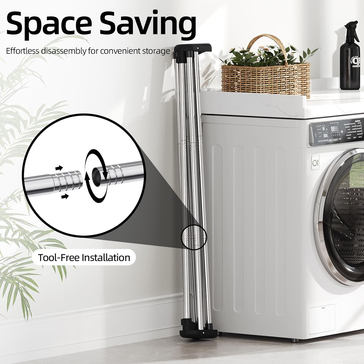 - Easy Assembly - This laundry drying rack is quite easy to put together. Just screw 2 tubes into 1 leg and snap the drying pole into place.