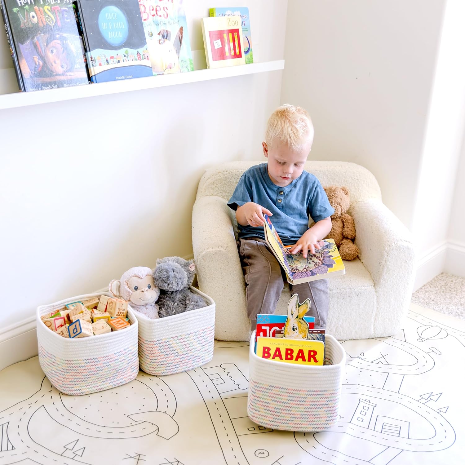 - Safe, Natural Cotton Organizer Bins: Crafted from the highest quality material in the market, our storage bins are oh-so-sturdy (and cute) and ready to take on little humans. They’re 100% safe, so you can rest easy if teething toddlers take a nibble.