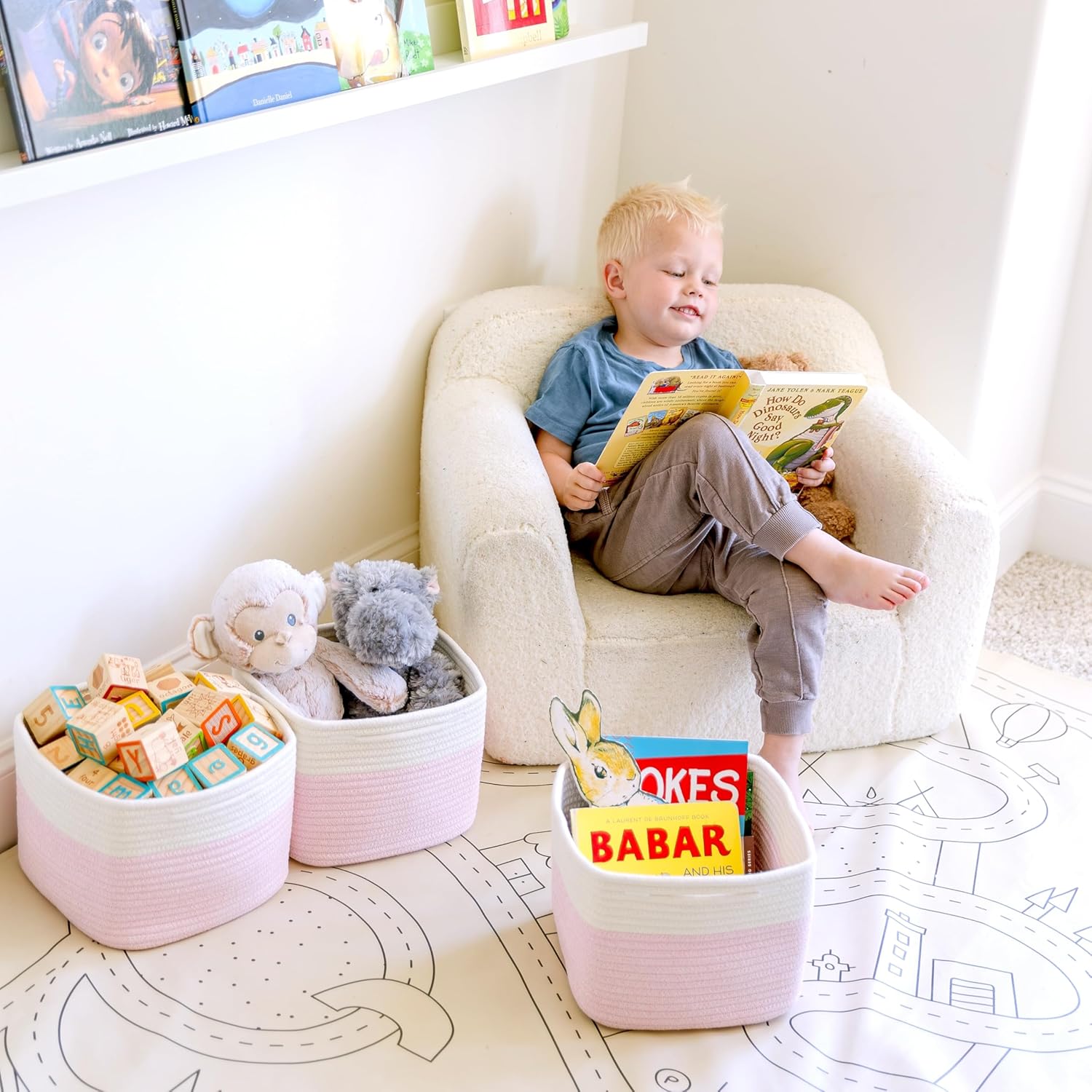 - Safe, Natural Cotton Organizer Bins: Crafted from the highest quality material in the market, our storage bins are oh-so-sturdy (and cute) and ready to take on little humans. They’re 100% safe, so you can rest easy if teething toddlers take a nibble.