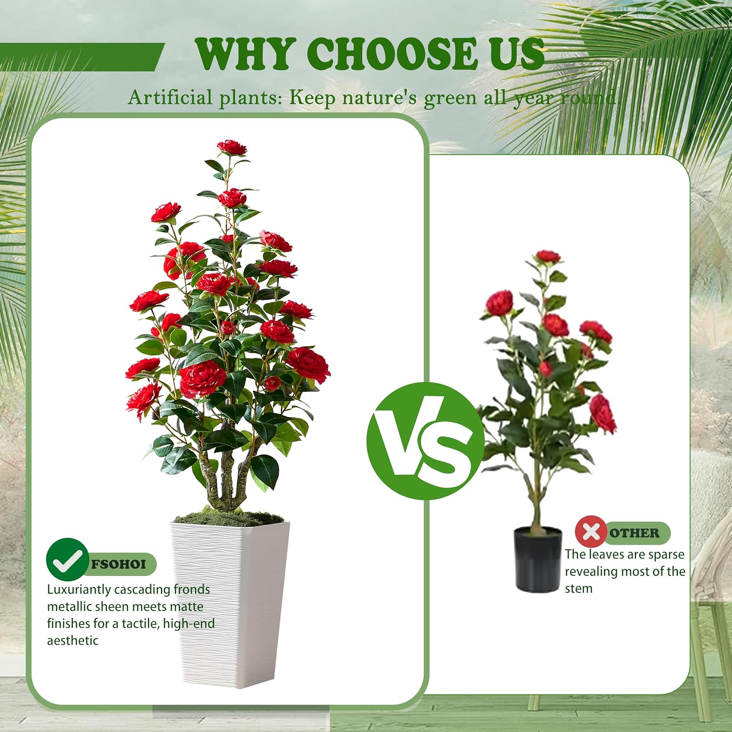 - πΈ Lifelike Camellia Trees: FSOHOI fake trees are meticulously crafted to mimic the appearance of real plants, being as close to the genuine article as possible; Especially referring to the blooming camellias, which are lifelike and have dense foliage; they appear vibrant and perfectly adorn your life. Artificial tree is made from high-quality materials, making it safe and realistic