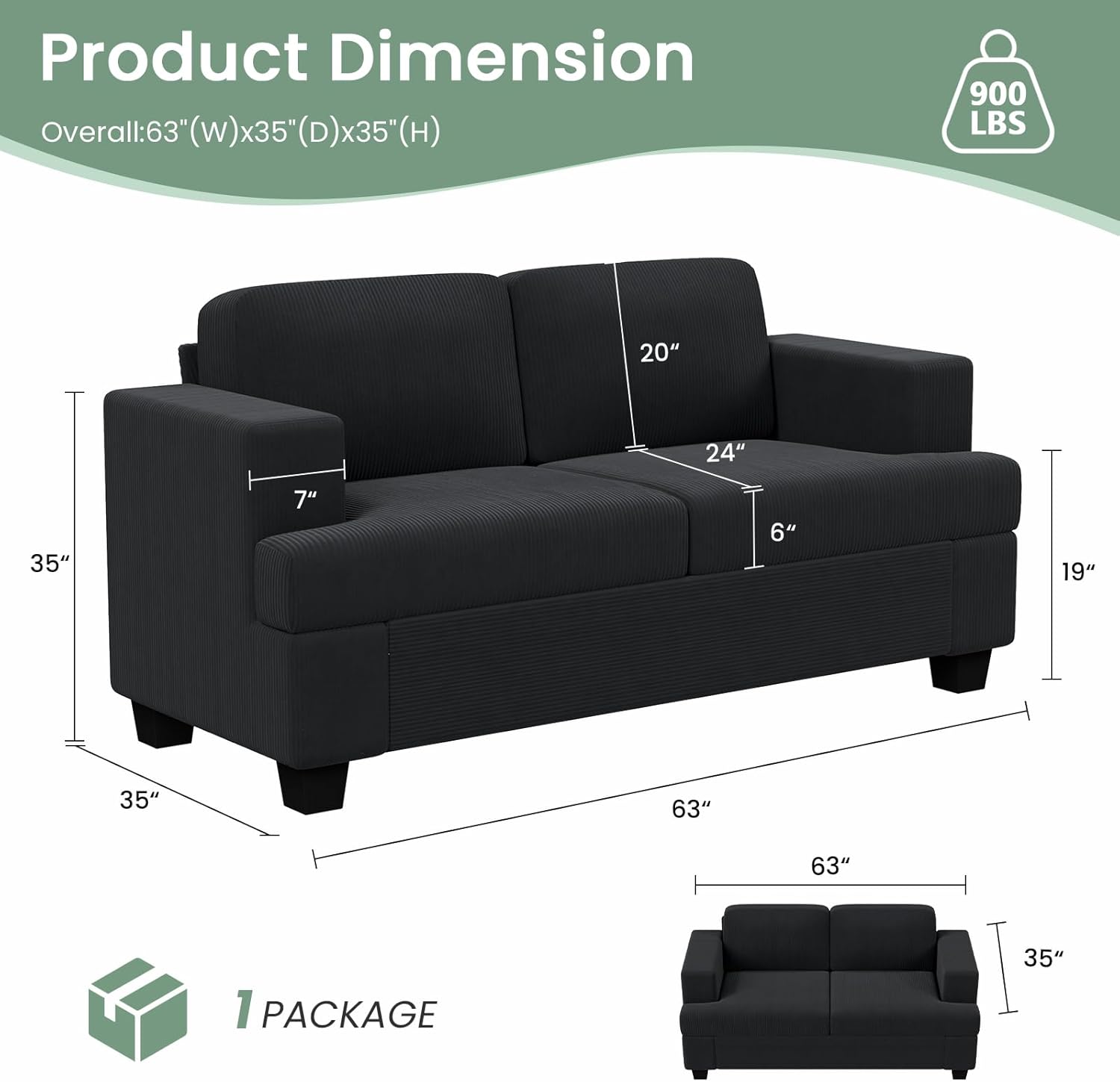 - ãSpacious SeatãAt 24" deep, sofa for living room is so spacious, suitable for various figures, perfect for your leisure time