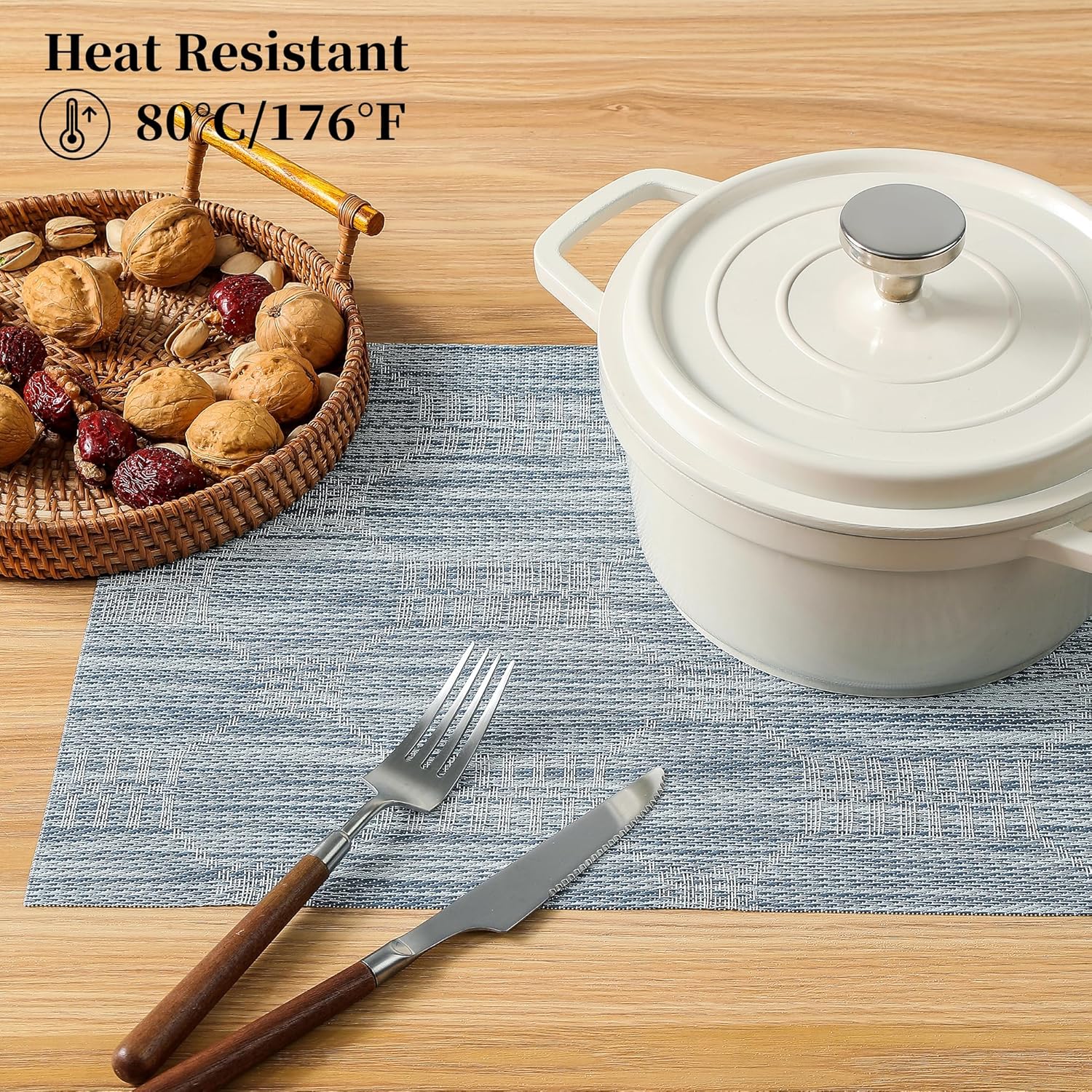 - Protects Your Table: Keep your table safe from scratches and spills with our heat-resistant placemats. They can withstand temperatures up to 176℉(80℃) and help keep food warm. Add style to your dining setting while ensuring table protection