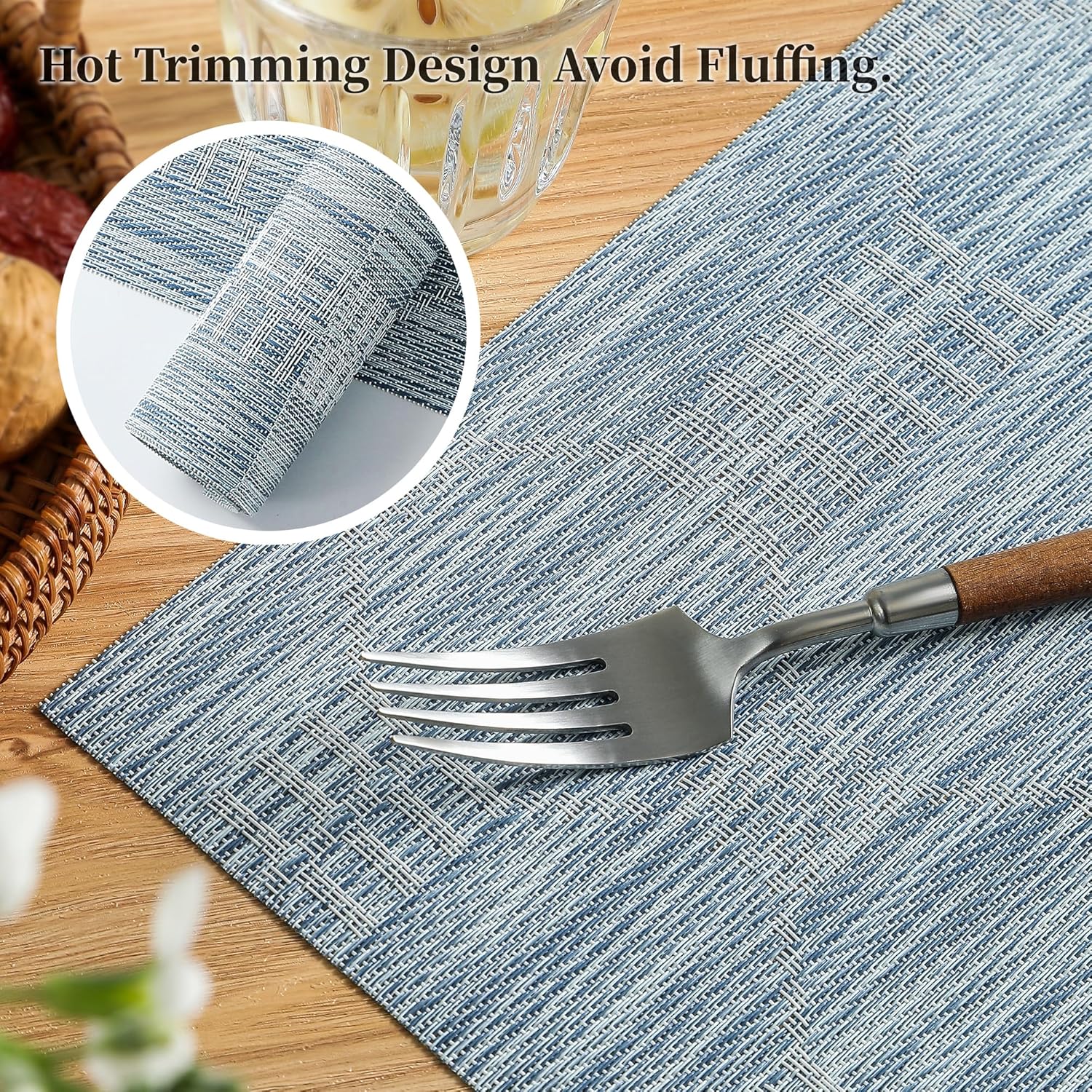 Leetaltree Alice Blue Placemats Set of 6 - Heat Resistant Non-Slip Place mats for Dining Table, Washable Durable PVC Vinyl Woven Table Mats(Jacquard Blue, 6)