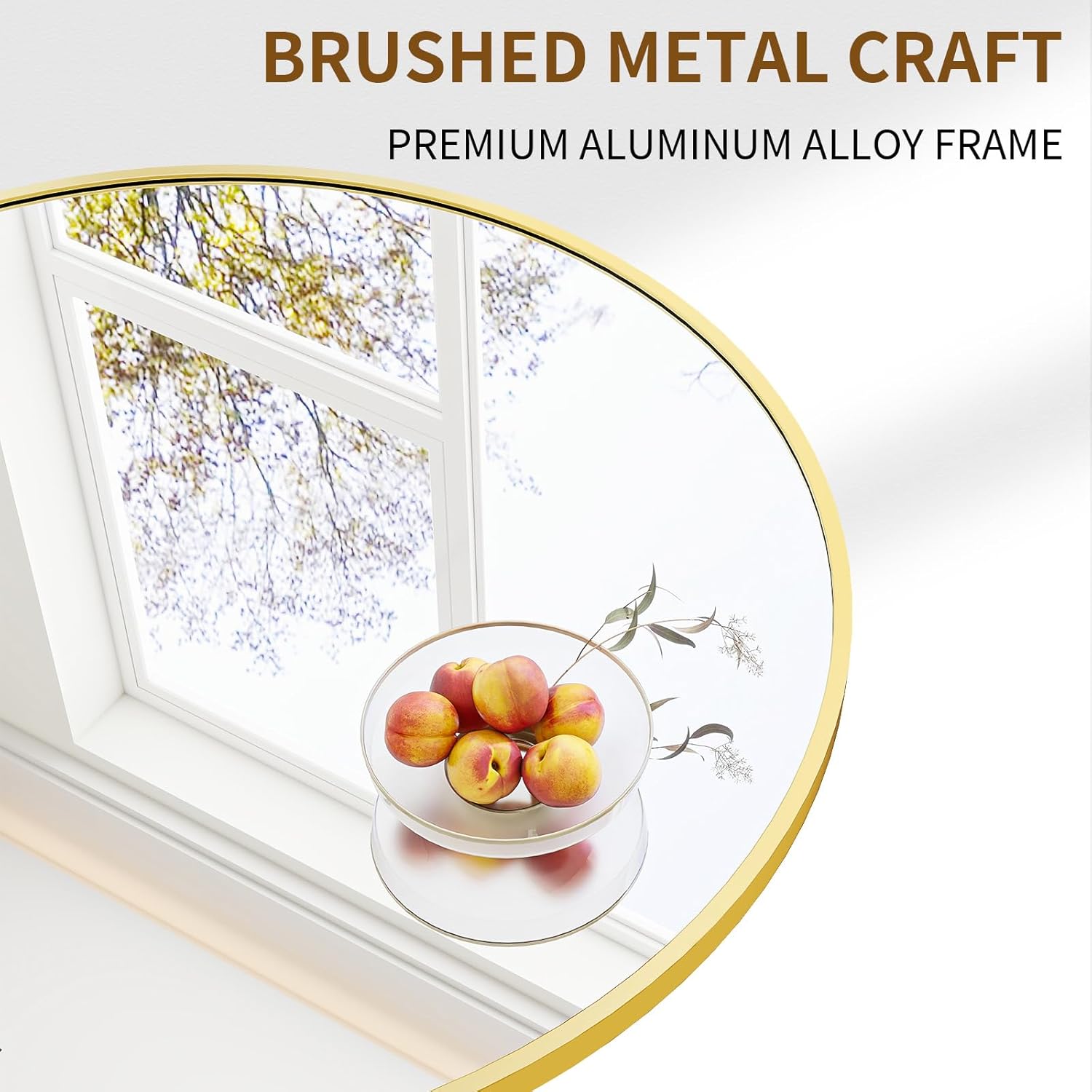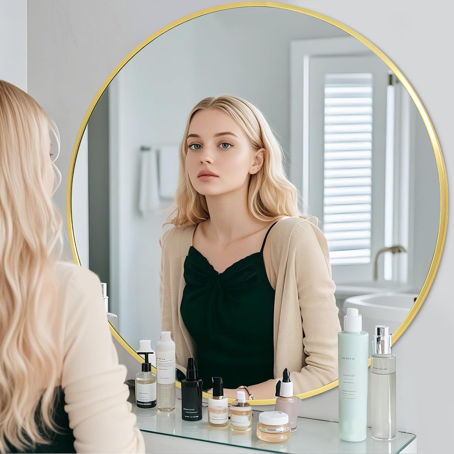 - Modern Brushed Frame Design: 48-inch gold circle mirror is crafted of an aluminum alloy metal sleek frame, making it ideal for bathroom mirror, entrance mirror, vanity mirror, living room mirror