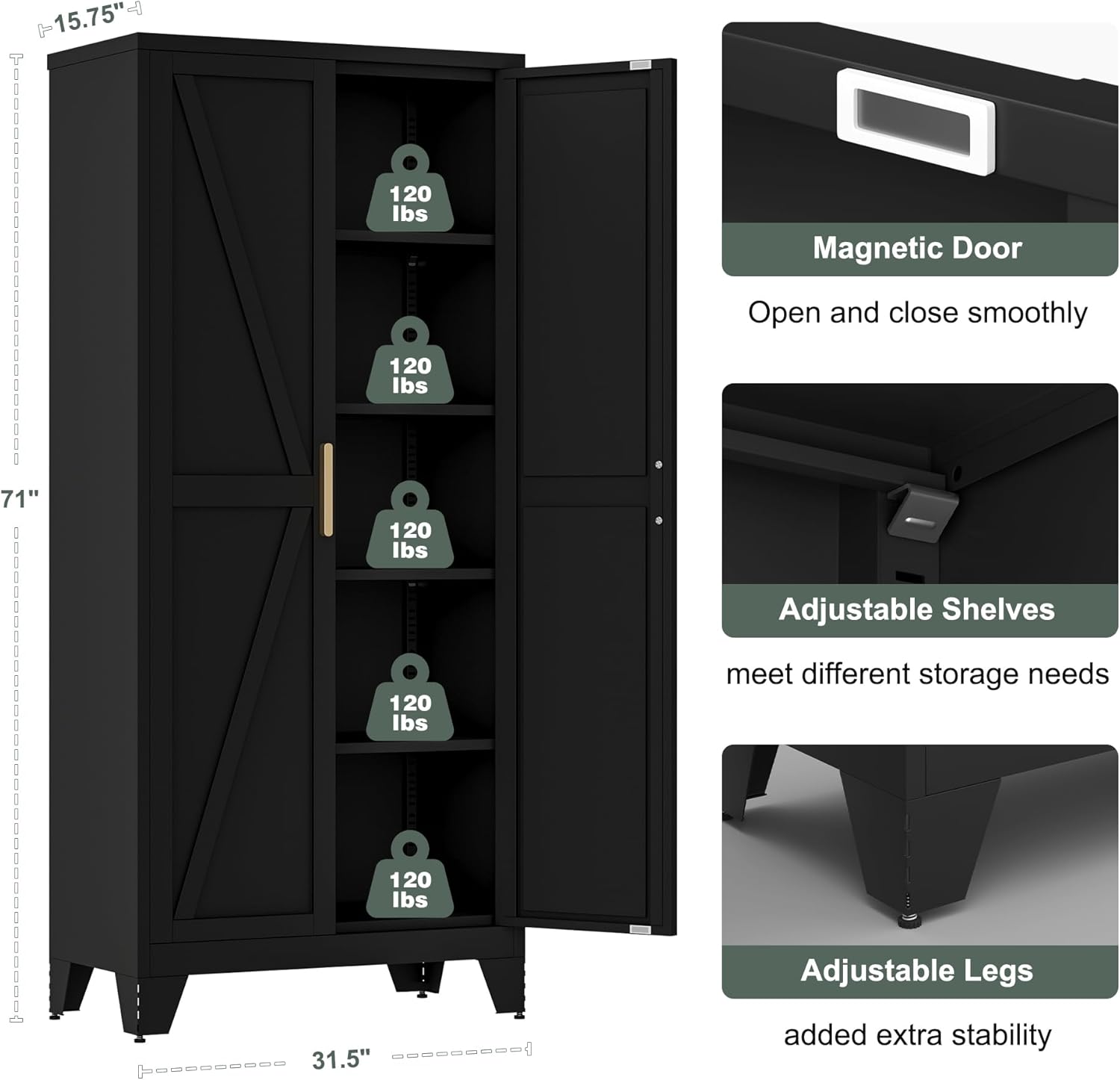 - Versatility: The 71-inch barn-style steel file cabinet is a classic and practical storage option for any room, from home offices to bathrooms, providing ample space for documents, kitchenware, towels, and more, while adding rustic charm.