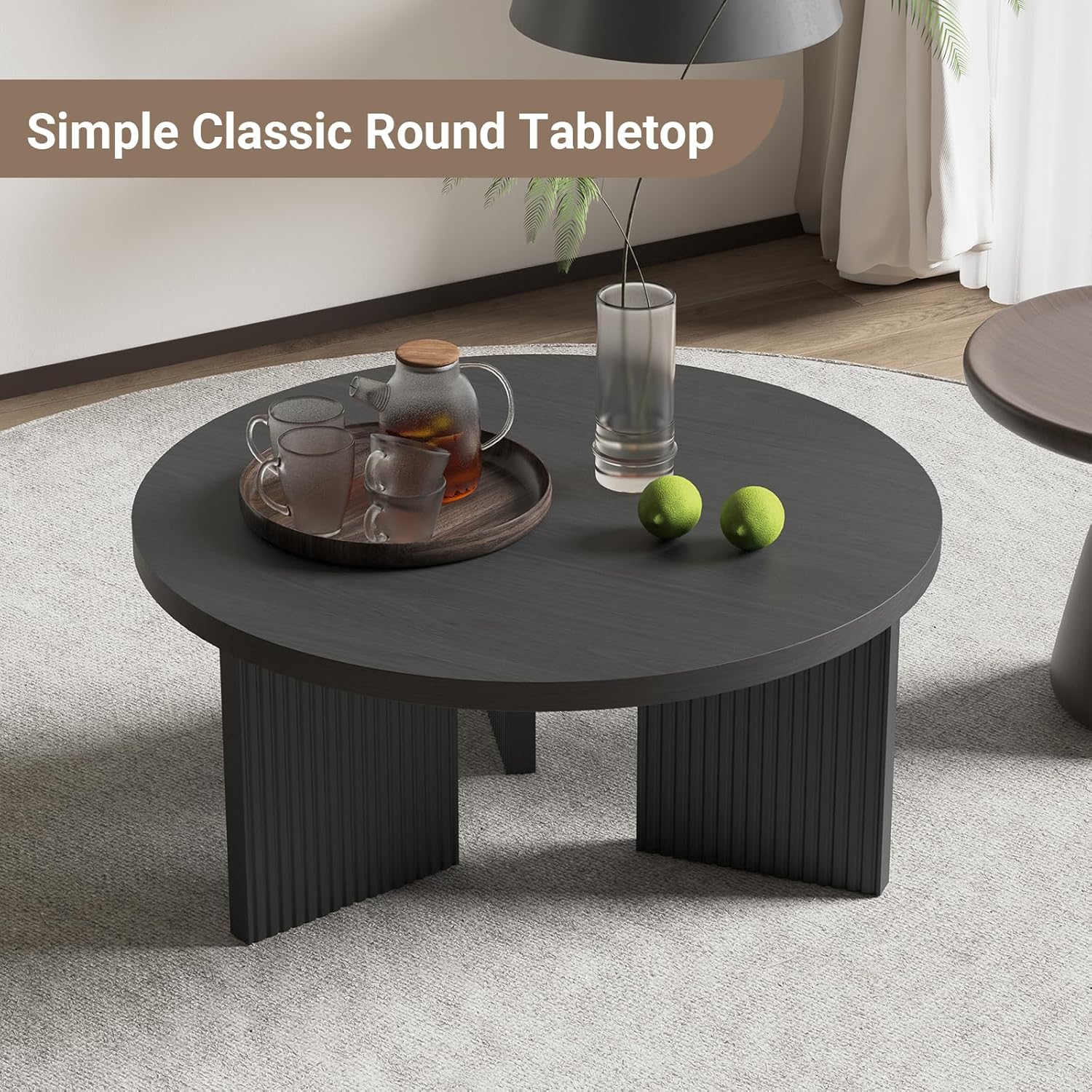 - Simple Style Round Table: The circle coffee table features a solid wood tabletop and thick legs for a sophisticated look and durability. Our small round coffee table has a sleek and modern design, the tabletop is round in design, and the overall construction is simple, exuding a modern style, which is perfect for precious family gatherings and creating pleasant moments.