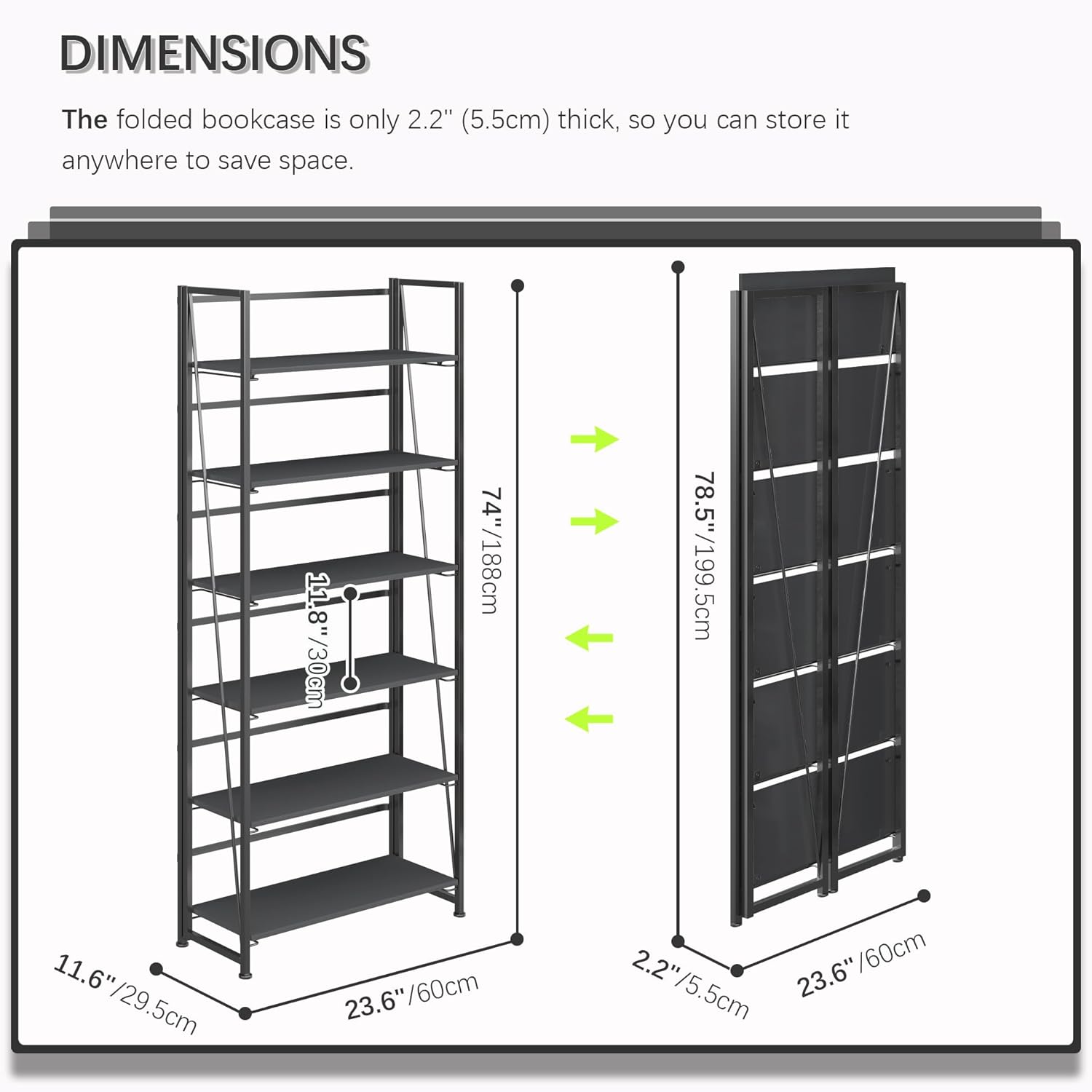 - ăStorage shelf folding sizedă23.62x2.2x78.54 inches (60x5.5x199.5cm).