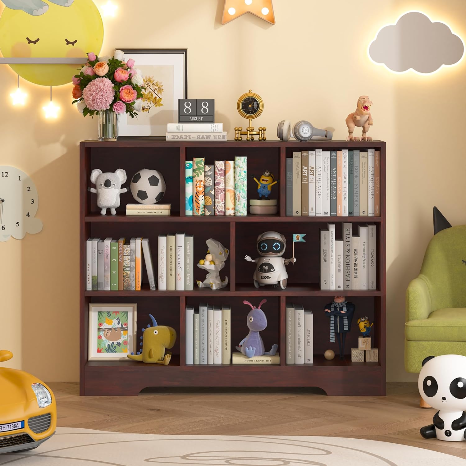 - ăLarge Capacity BookcaseăThis bookshelf features 8 large storage cubes to display and store your books, plants, photos and collections. The Bookcase can be used not only as a bookshelf, but also as a display cabinet, file cabinet and general storage cabinet that can be placed in bedrooms, living rooms and offices.
