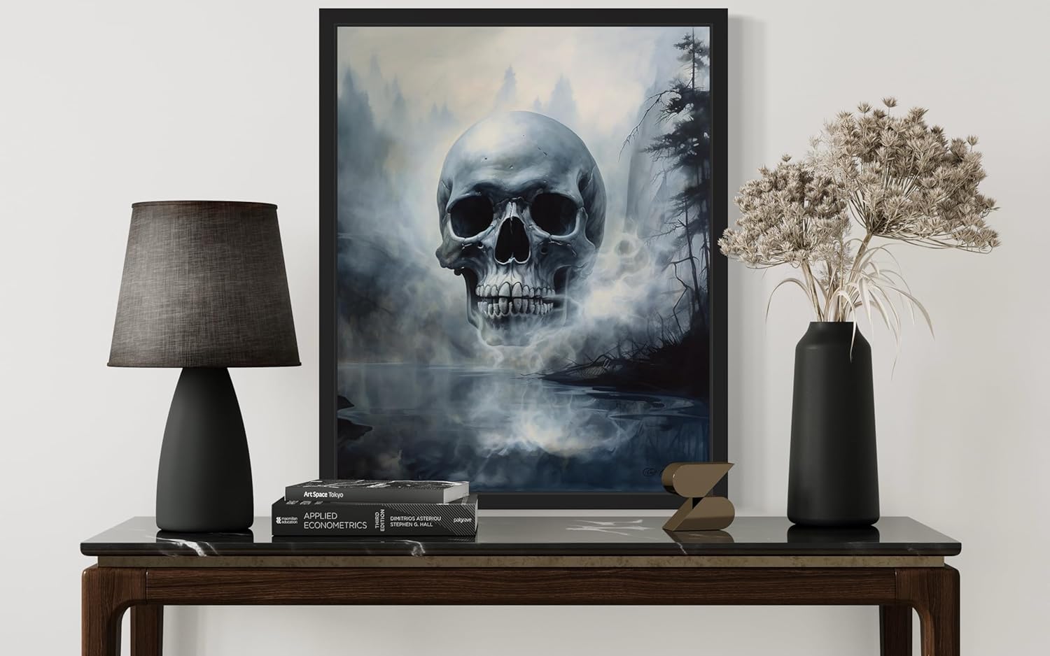 Foggy Skull Poster Art Print, Halloween Scary Vintage Wall Art Academia Spooky Painting Decoration for Horror Prints, Gothic Posters Bedroom Decor 89 (Foggy Skull, 8 x 10 inches, Unframed)