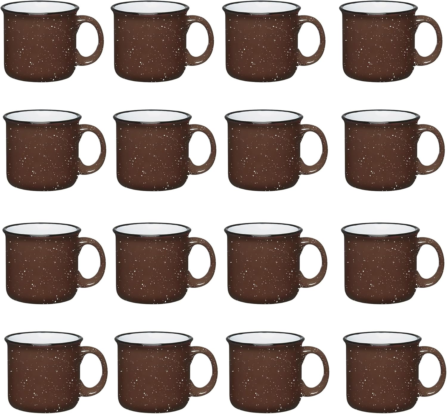 Set of 16 Ceramic Campfire Mugs – 15 Oz, Brown – Coffee & Tea Cups for Home, Work, Travel, Camping – Customizable, Great for DIY, Events, Companies