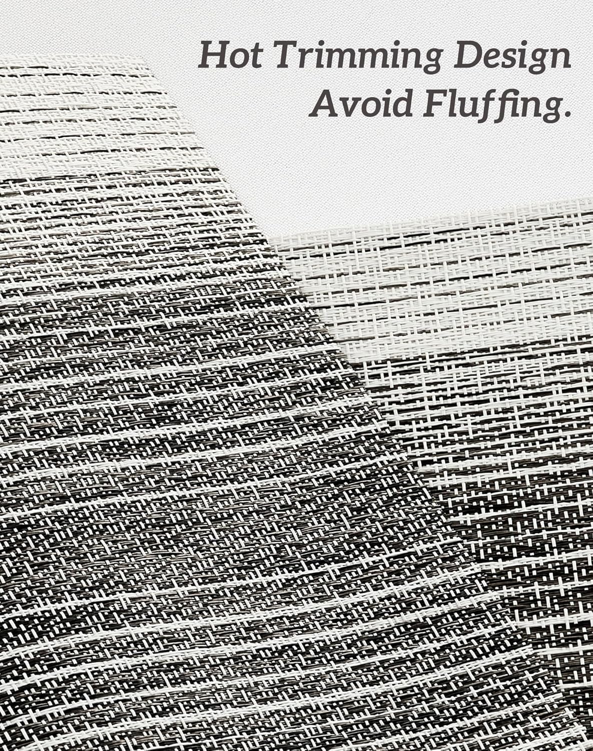 - Elegant and Practical Design: With a luxurious vinyl woven texture, precision cutting, and heat-trimmed edges, our double-sided placemats offer a sophisticated and practical solution. They provide a non-slip surface, resist fading, and are easy to clean, elevating your dining experience