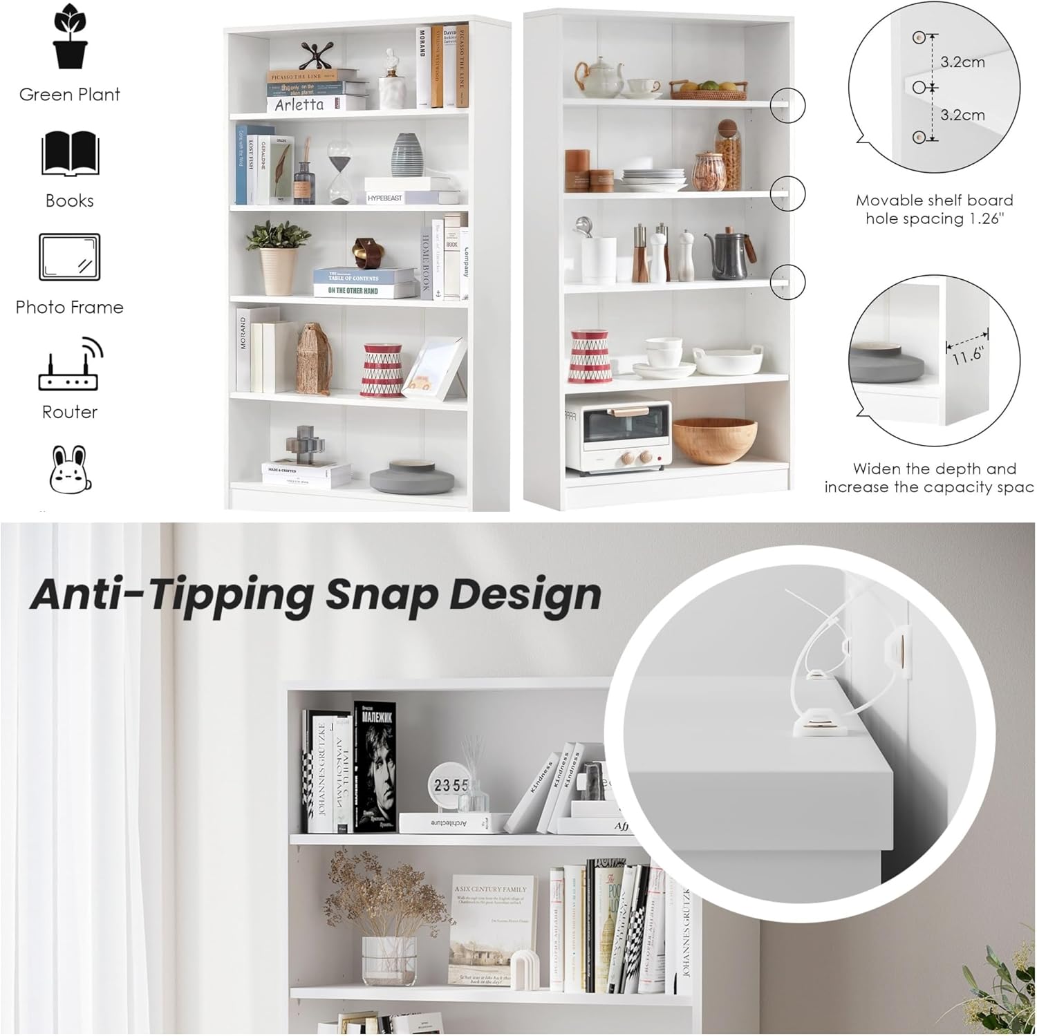 - Durable Construction: Crafted from high-quality wood, this bookshelf bookcase is built to last. Its sturdy design ensures that it can support your collection of books and decorative items while maintaining its aesthetic appeal over time