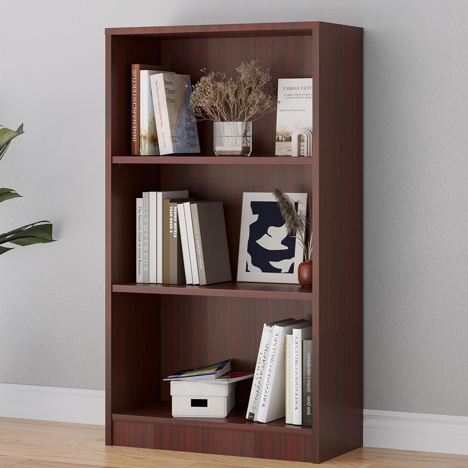 Bookshelf, Open Modern Bookshelf, 3 Shelf Bookcase with Freestanding Display Storage, Wooden Book Shelf for Bedroom, Living Room, Dinning Room, Office,Deep Brown