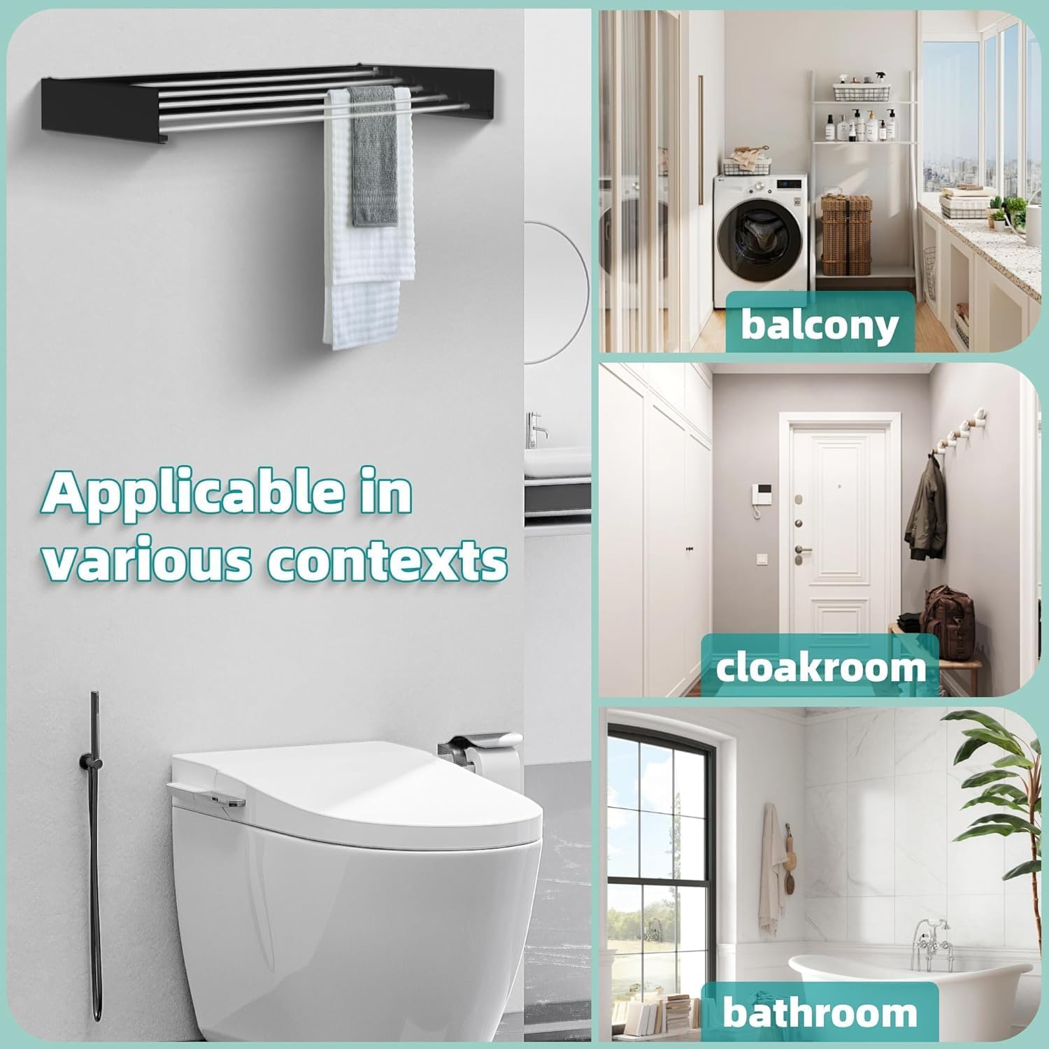 - 【Strong load-bearing capacity】: strong bearing capacity and stability, rust-proof and wear-resistant.Folding wall-mounted design, equipped with 5 heavy-duty aluminum poles, .1 feet of linear suspension wire, and can bear a maximum weight of 45 lbs.
