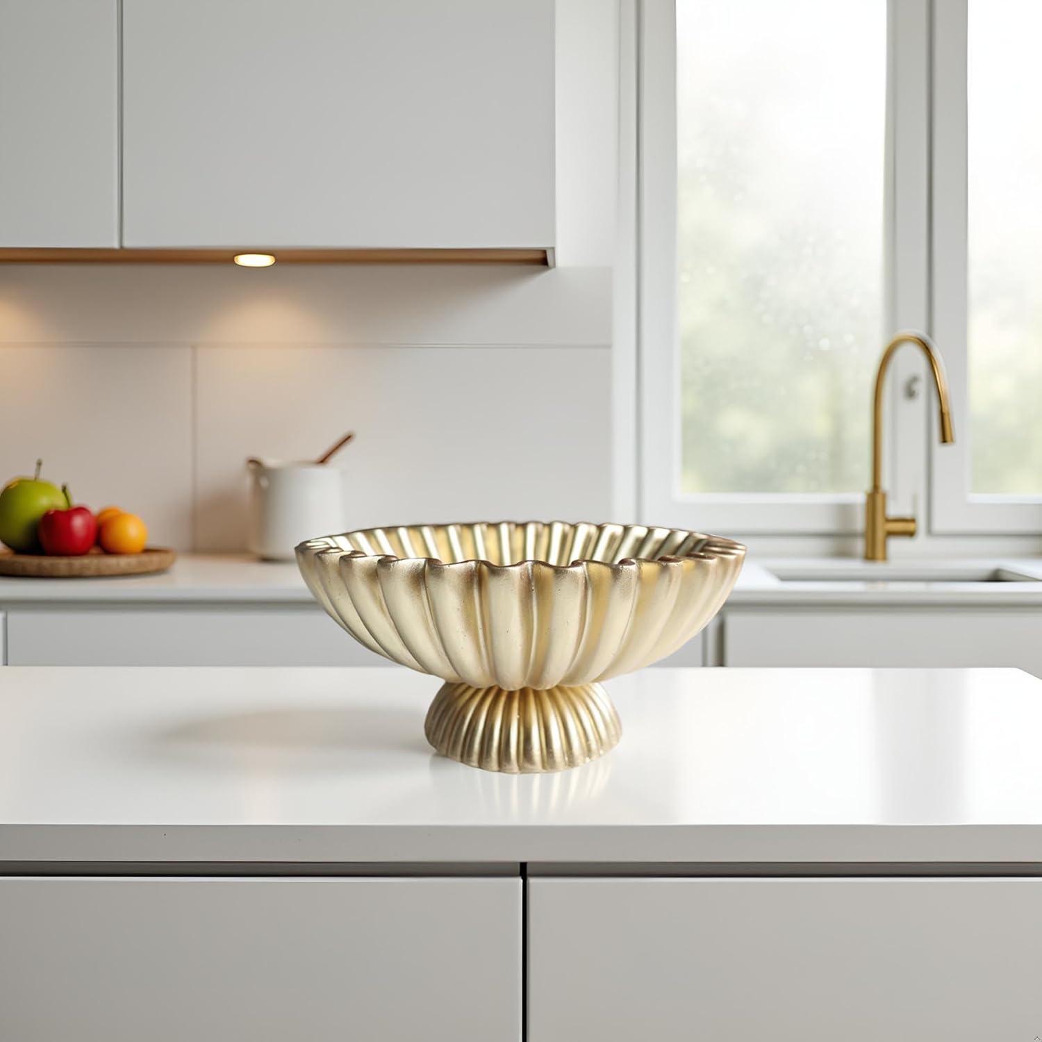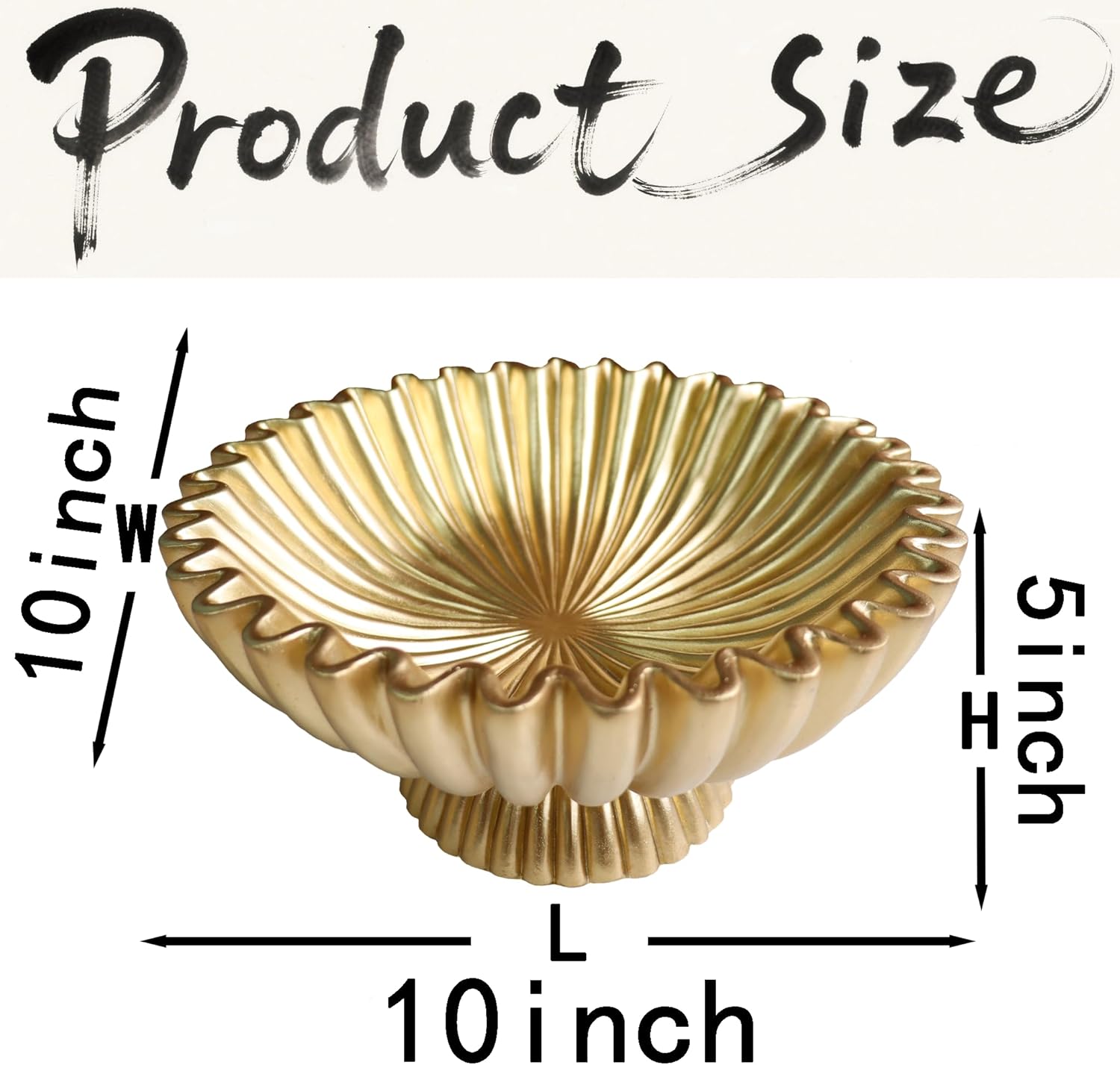 10" Large Decorative Bowl decor, Scalloped Bowls for Modern Home Decor,Ruffle Decor,Stylish Key Bowl for Entry Table,Decorative Fruit Bowl for Kitchen Counter,With base,Golden