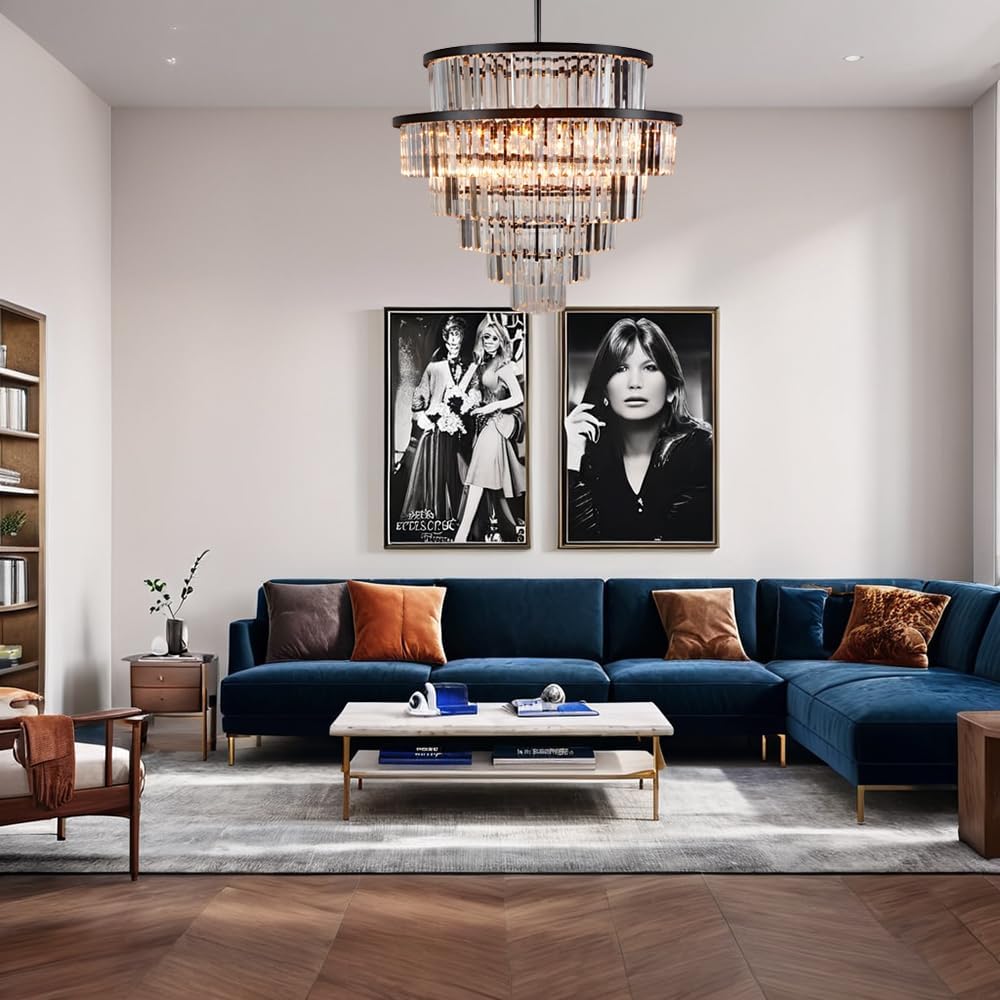 Luxury 6-Tier Round K9 Crystal Chandelier, Black Finish 26 Inch Diam Ceiling Light, Classic Elegant Chandelier with Crystal Piece, Lighting Fixture for Hallway, Bedroom, Living Room