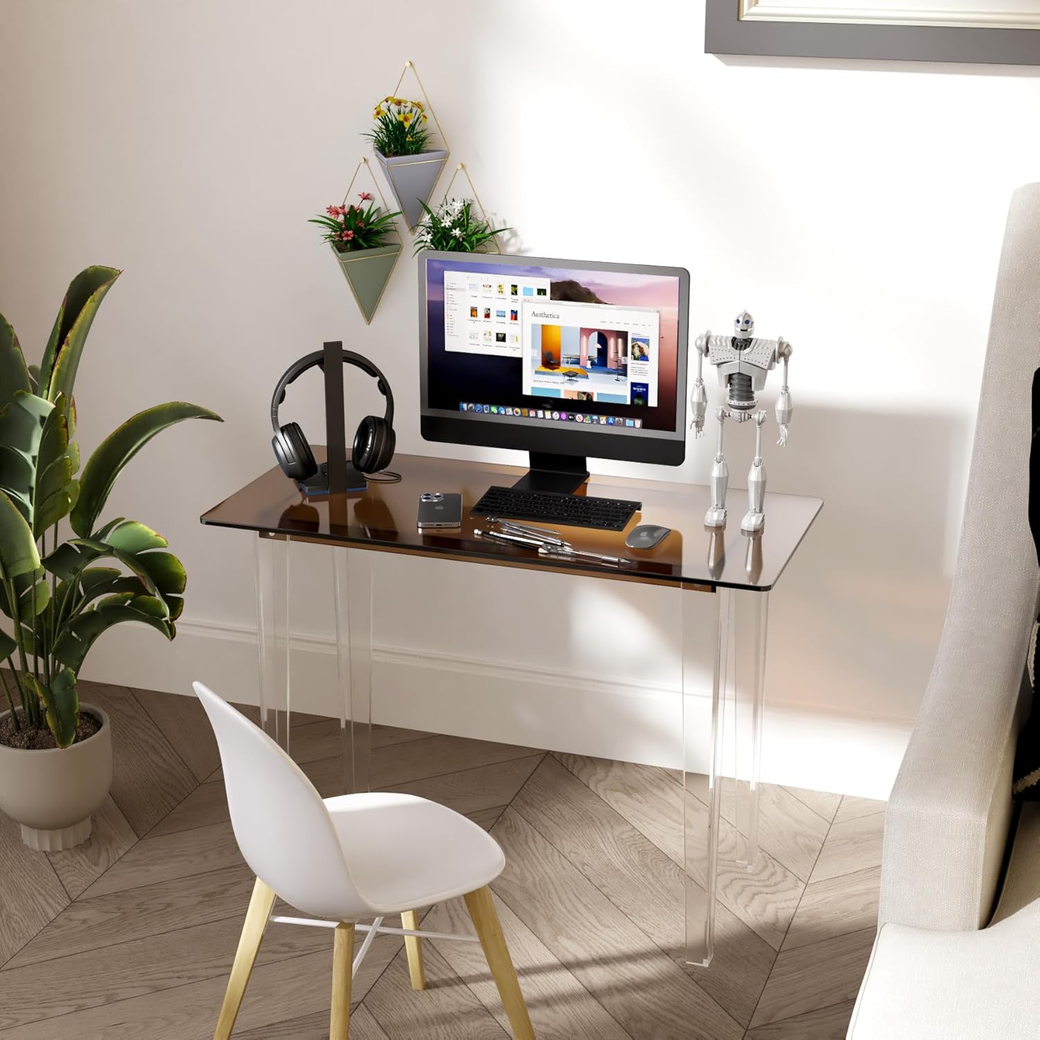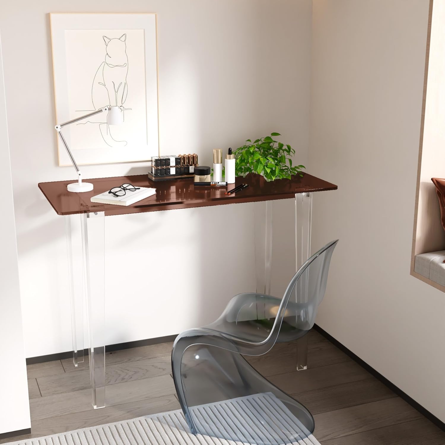 - 【Stable Acrylic Computer Desk】 Reinforced edge and base design ensures stable support - keeps laptop/PC, books or cosmetics stable without shaking.