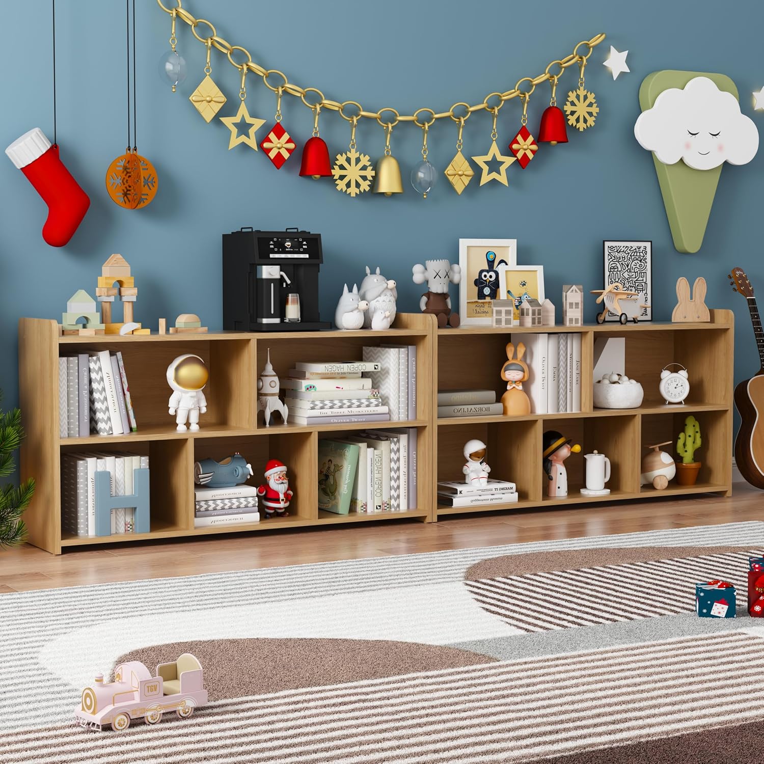 Book Shelf, 5 Cubes Storage Organizer, Open Shelf Wooden Bookcase, Freestanding Log Bookshelf Cube Shelf for Bedroom, Living Room, Home Office