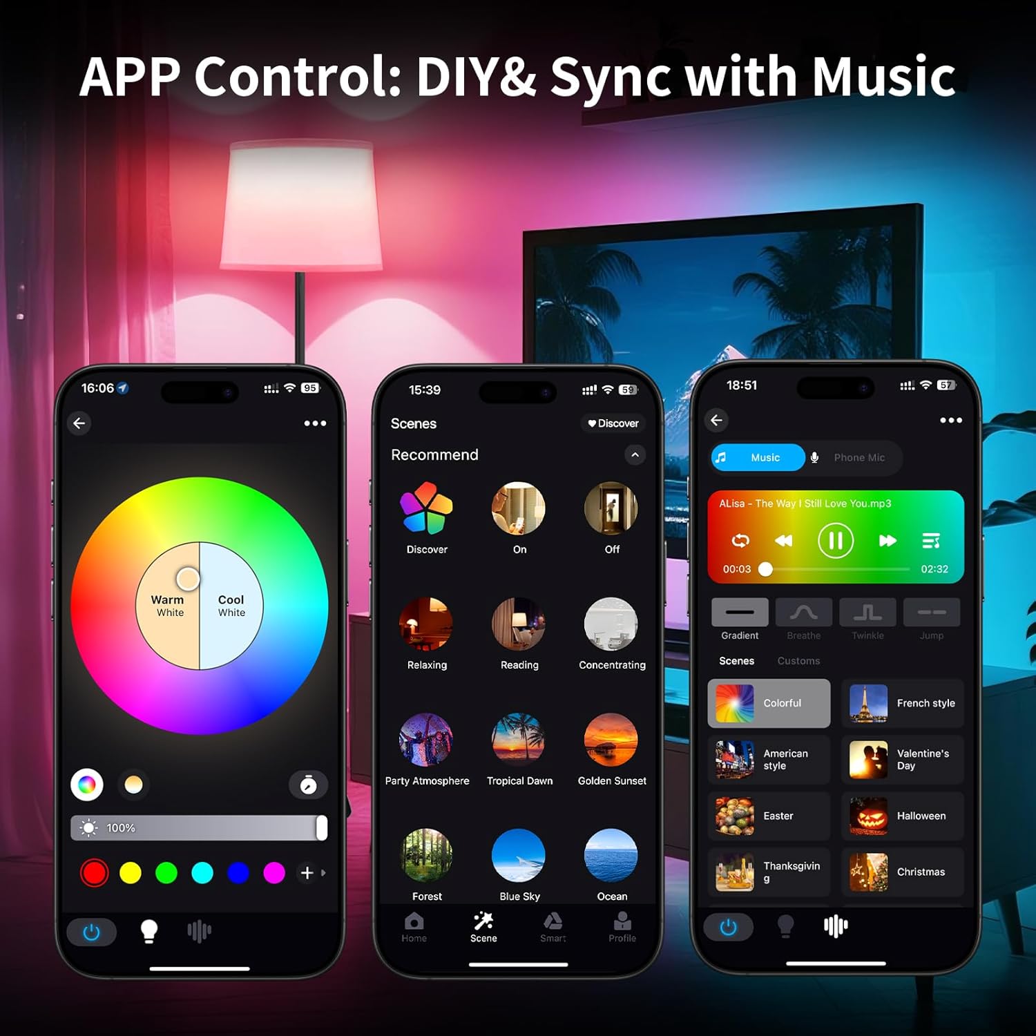 - 【APP Control: DIY& Sync with Music 】To use this RGB floor lamp, start by turning it on with the foot switch. After that, you can control it with either a remote or a smartphone.The floor lamp for bedroom also has a music rhythm feature that changes the colors and brightness to match the beat of the music. It's a fun way to liven up your parties with an awesome music and light experience!